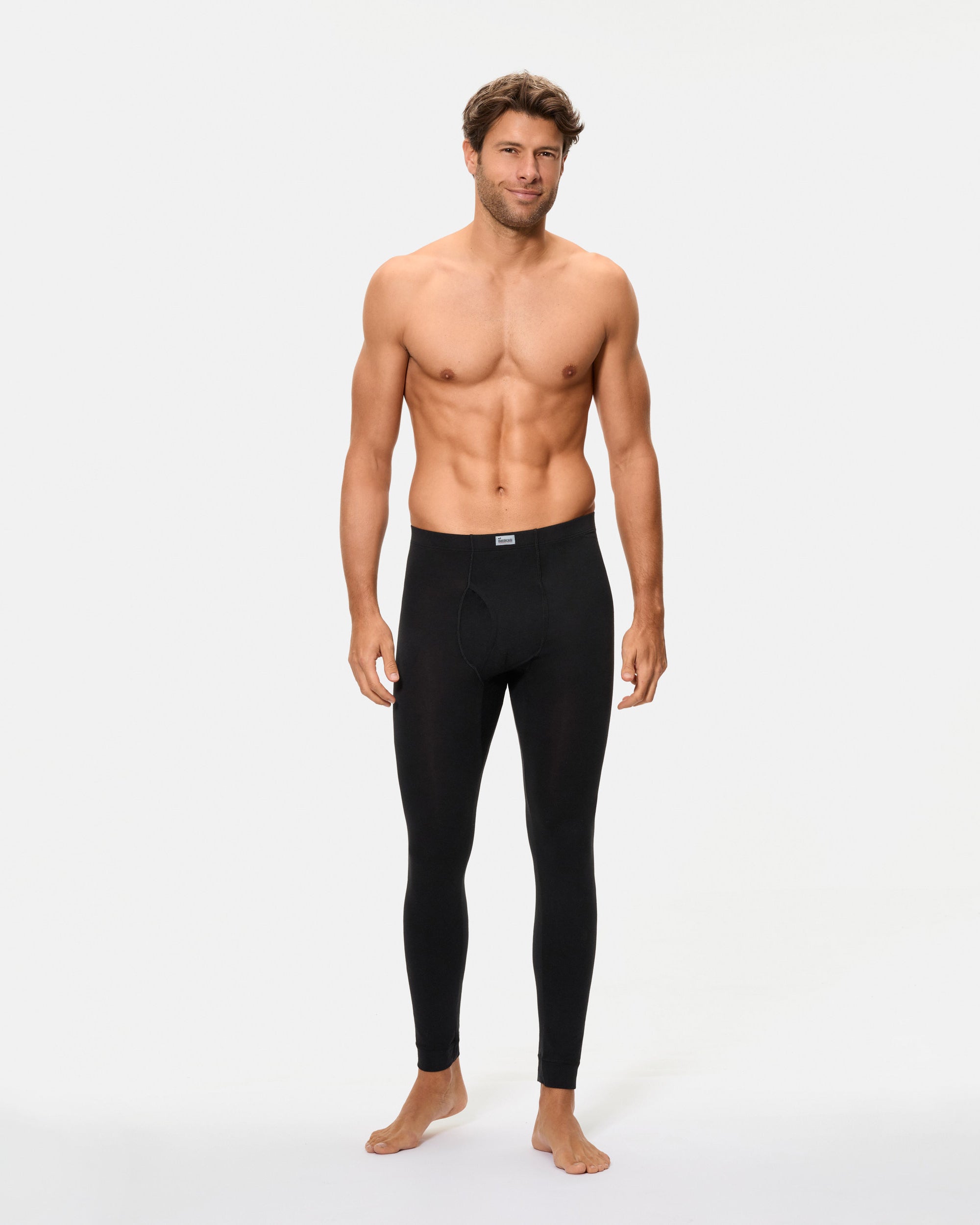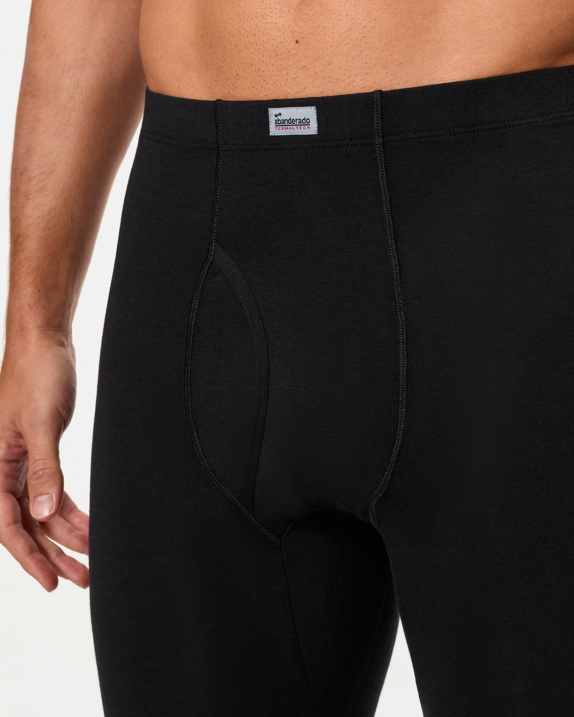 Men's 100% Cotton Thermal Long John Briefs Termaltech Black