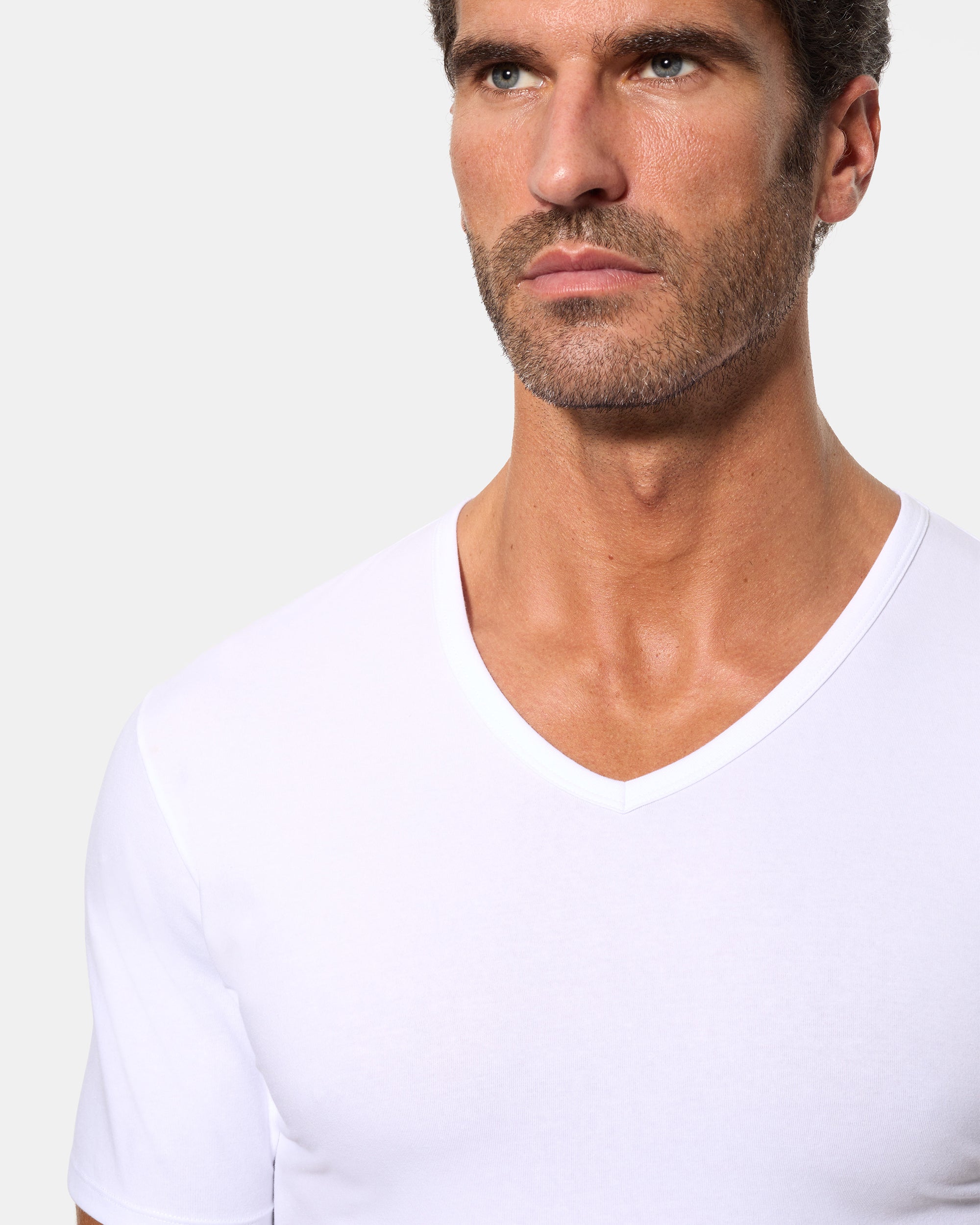 Men's Short-Sleeved V-Neck T-Shirt with Regul'activ Thermoregulatory Technology in Stretch Cotton, White