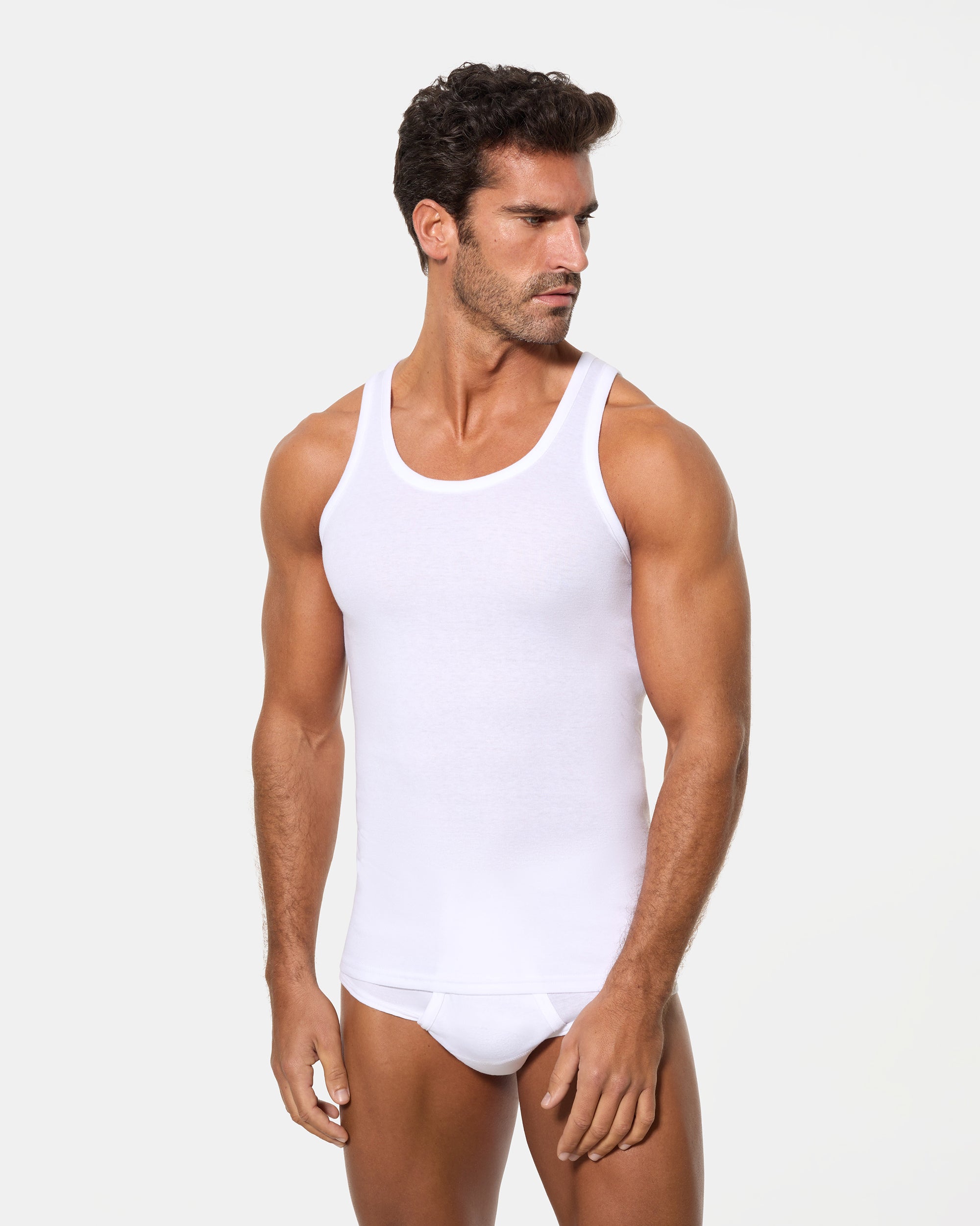 Men's classic tank top, made from a blend of 50% high quality cotton and 50% polyester. Its 1x1 ribbed knit offers a comfortable fit and great breathability, ensuring comfort and freshness all day long. In addition, its resistance to washing makes it a durable garment for everyday wear.