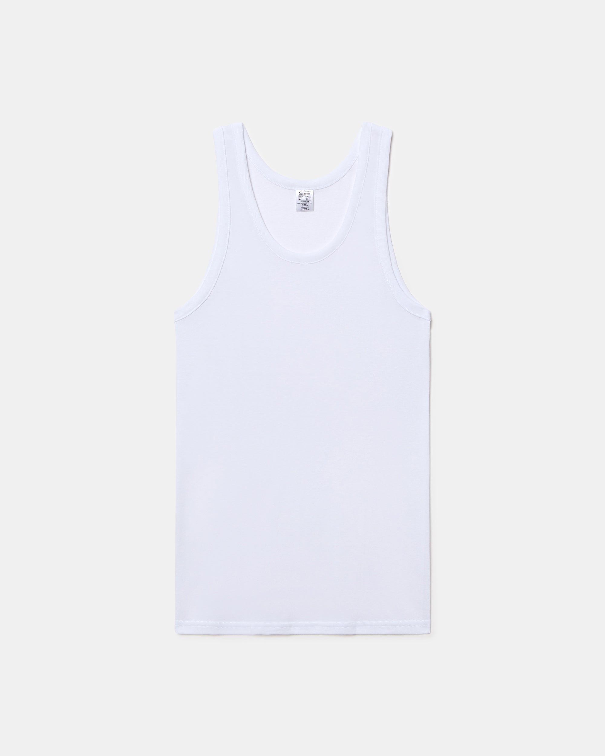 Men's Classic Ribbed Tank Top, 50% Cotton, 50% Polyester, White