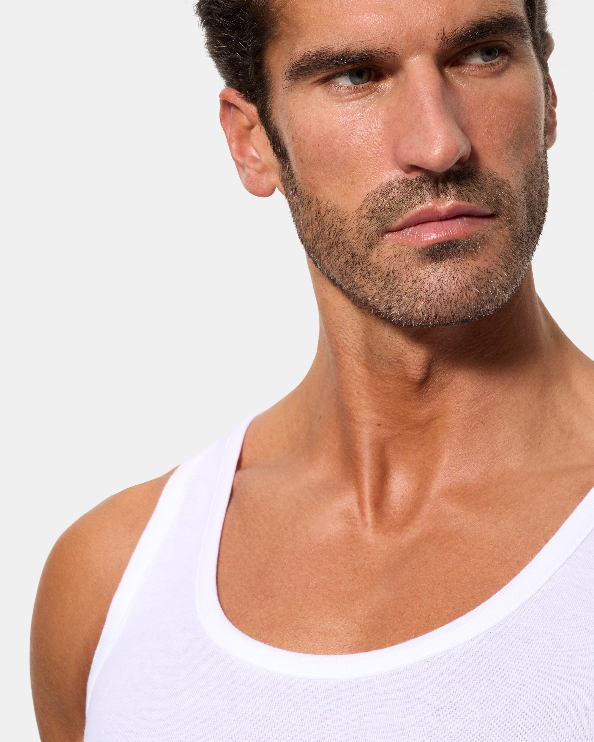 Men's tank tops, made of 100% cotton of the highest quality and 1x1 ribbed knit. This type of fabric is very flexible, providing a slim fit to the body without being too rigid. In addition, its ribbed structure offers excellent breathability and resistance, making it a comfortable and durable garment. Its classic cut and soft fabric ensure maximum comfort and convenience all day long. Available in White, it is perfect both to wear as an undergarment or to wear it on the outside, being very easy to combine with other garments.