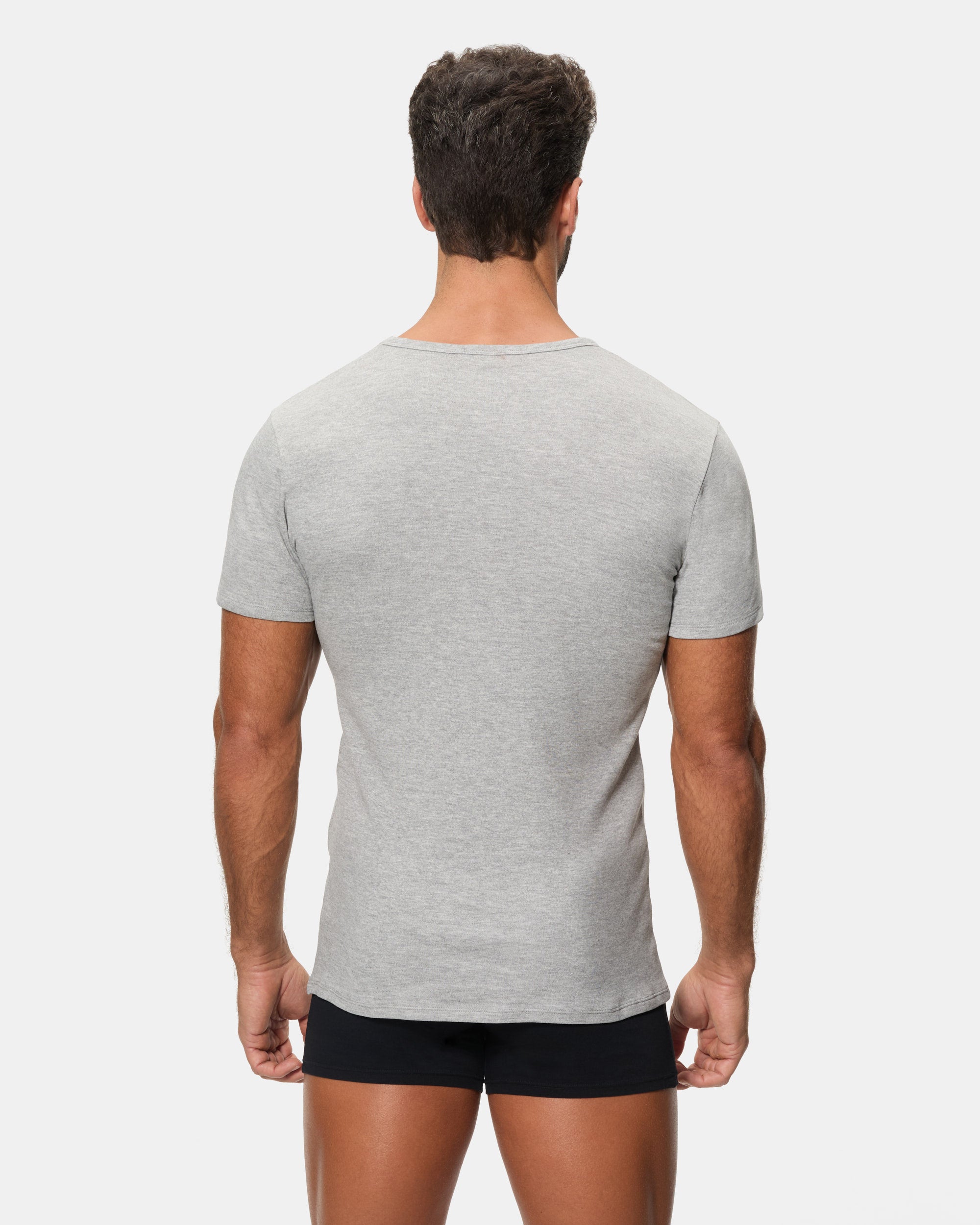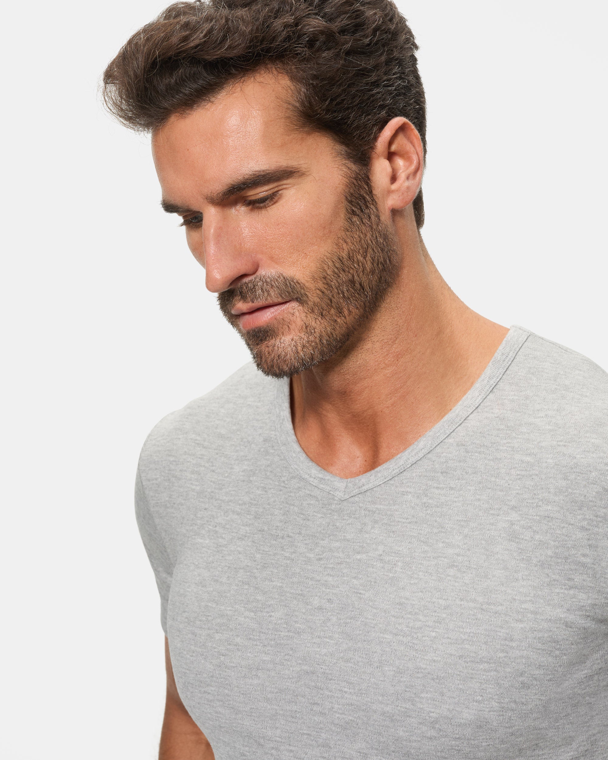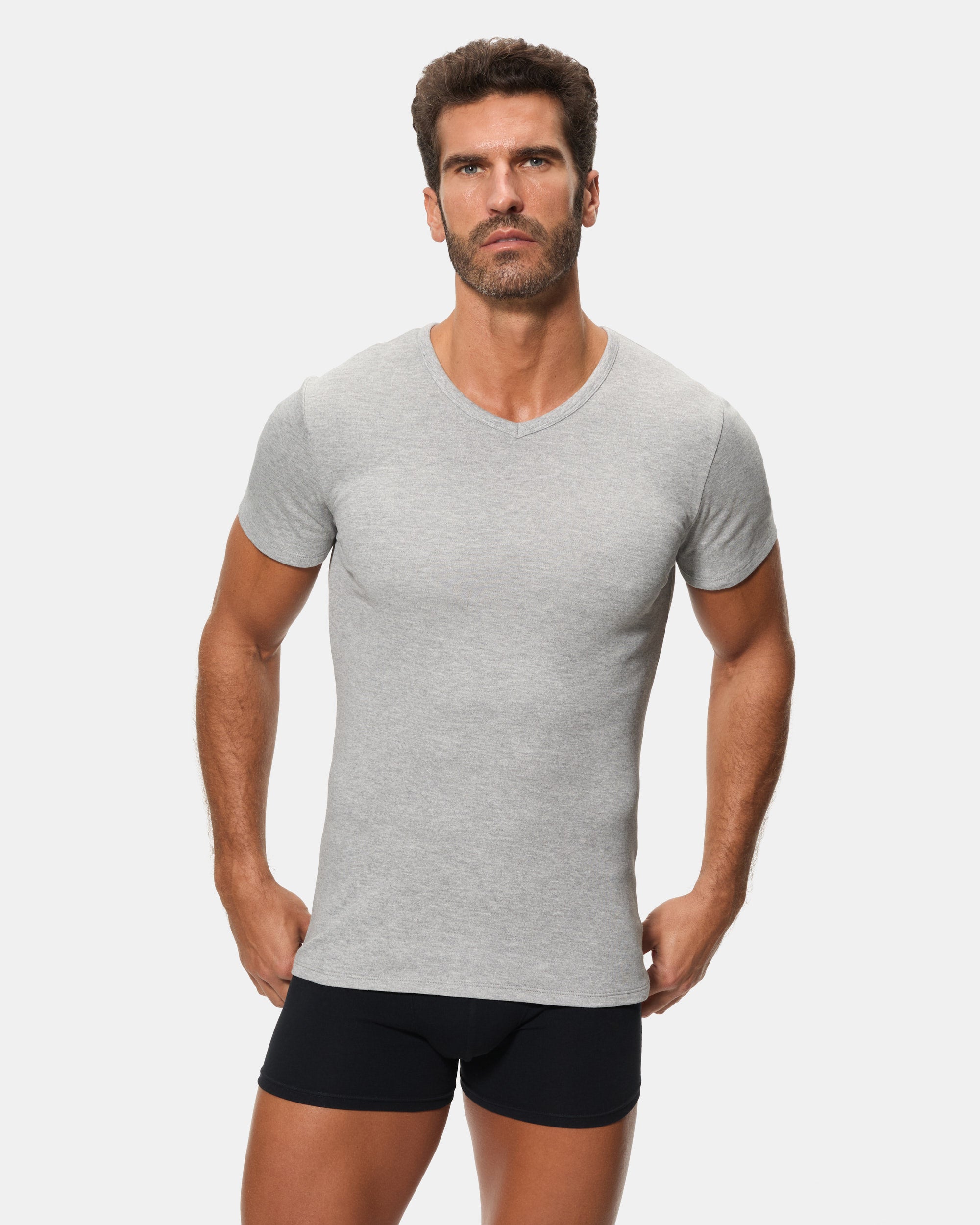 Men's short-sleeve thermal T-shirt with V-neck, made of 100% cotton interlock fabric. Soft and warm thanks to the fleece lining, this T-shirt is ideal for all-day comfort and warmth. The Dark gray color brings a sleek and understated style, perfect for those looking for a thermal garment that goes with everything.