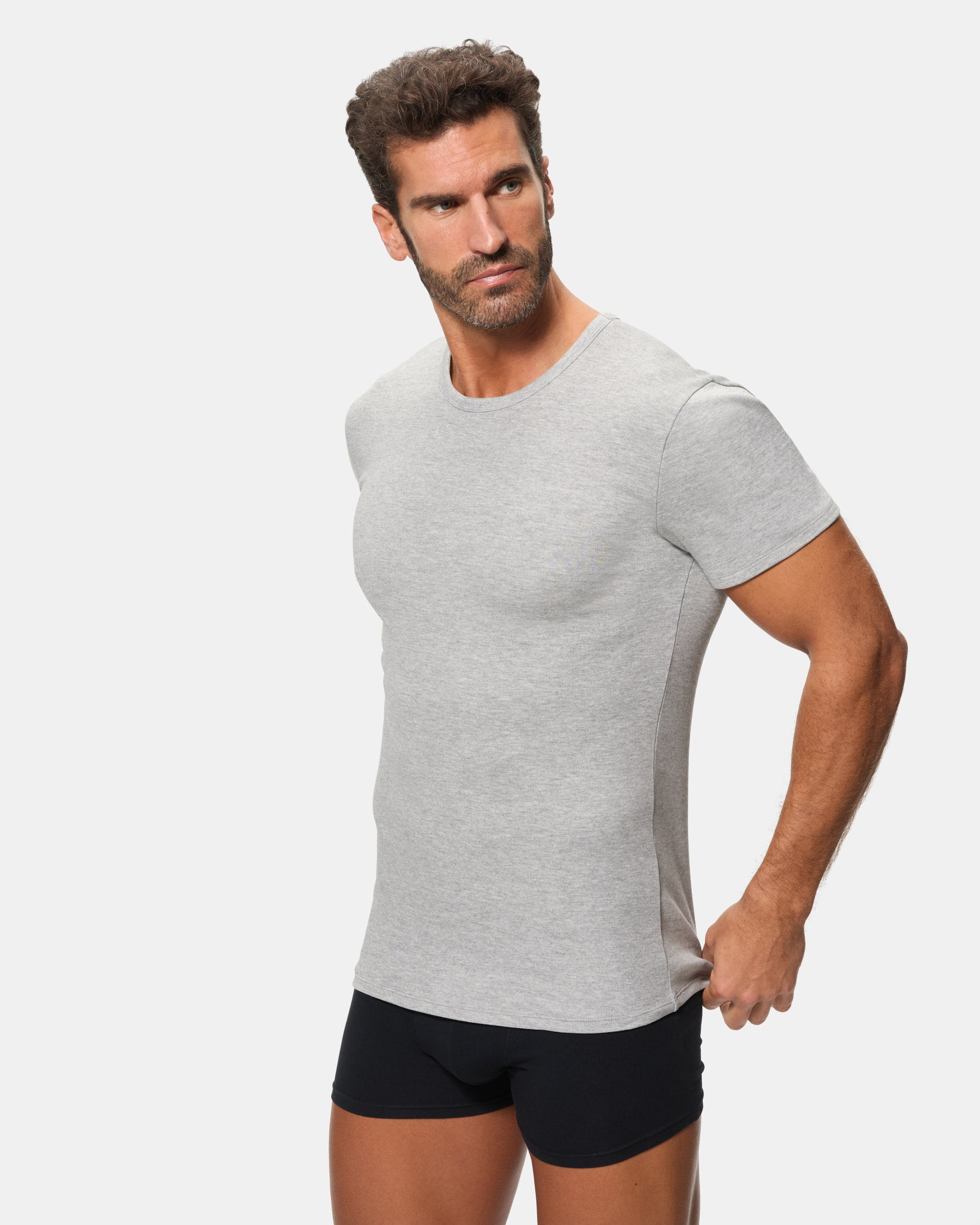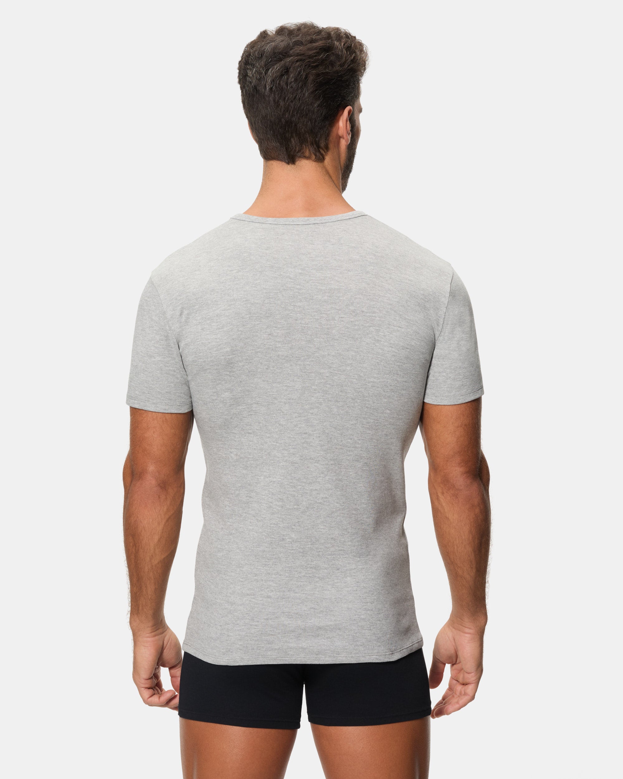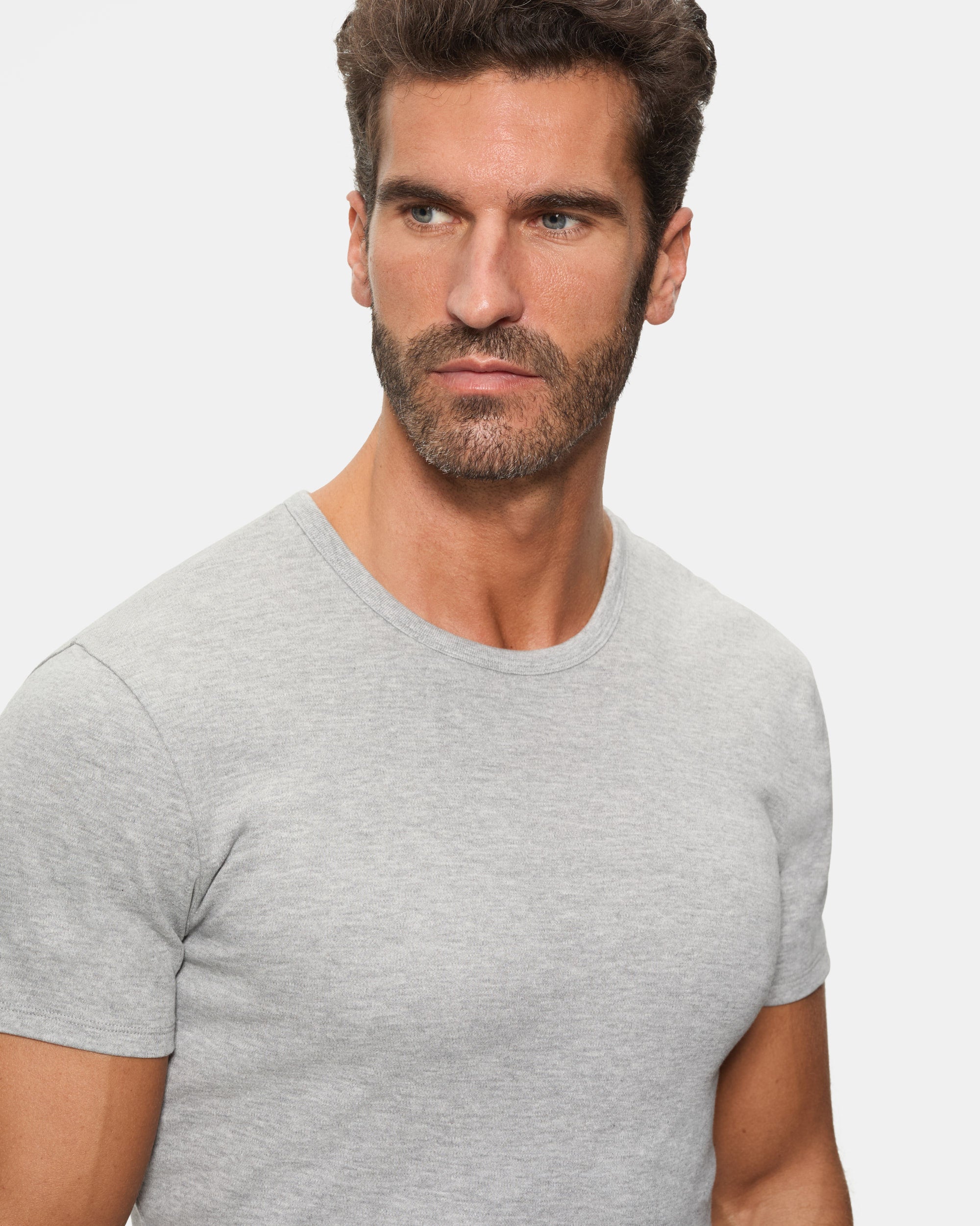 Men's short-sleeve thermal T-shirt with round neck, made with 100% cotton. Soft and warm, with a plush interior for extra comfort and warmth. The Gray color is elegant and easy to match, ideal for keeping a simple yet sophisticated style.