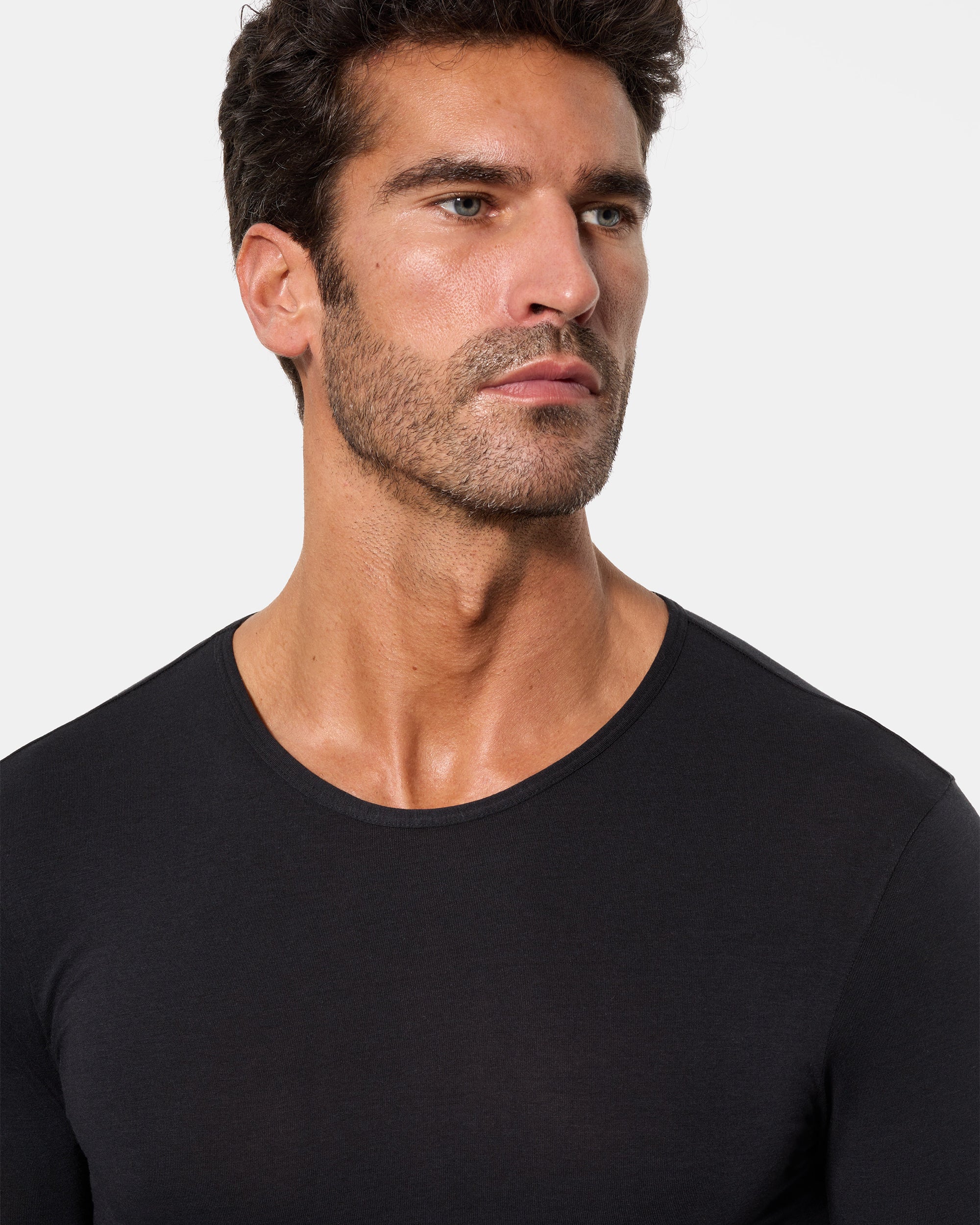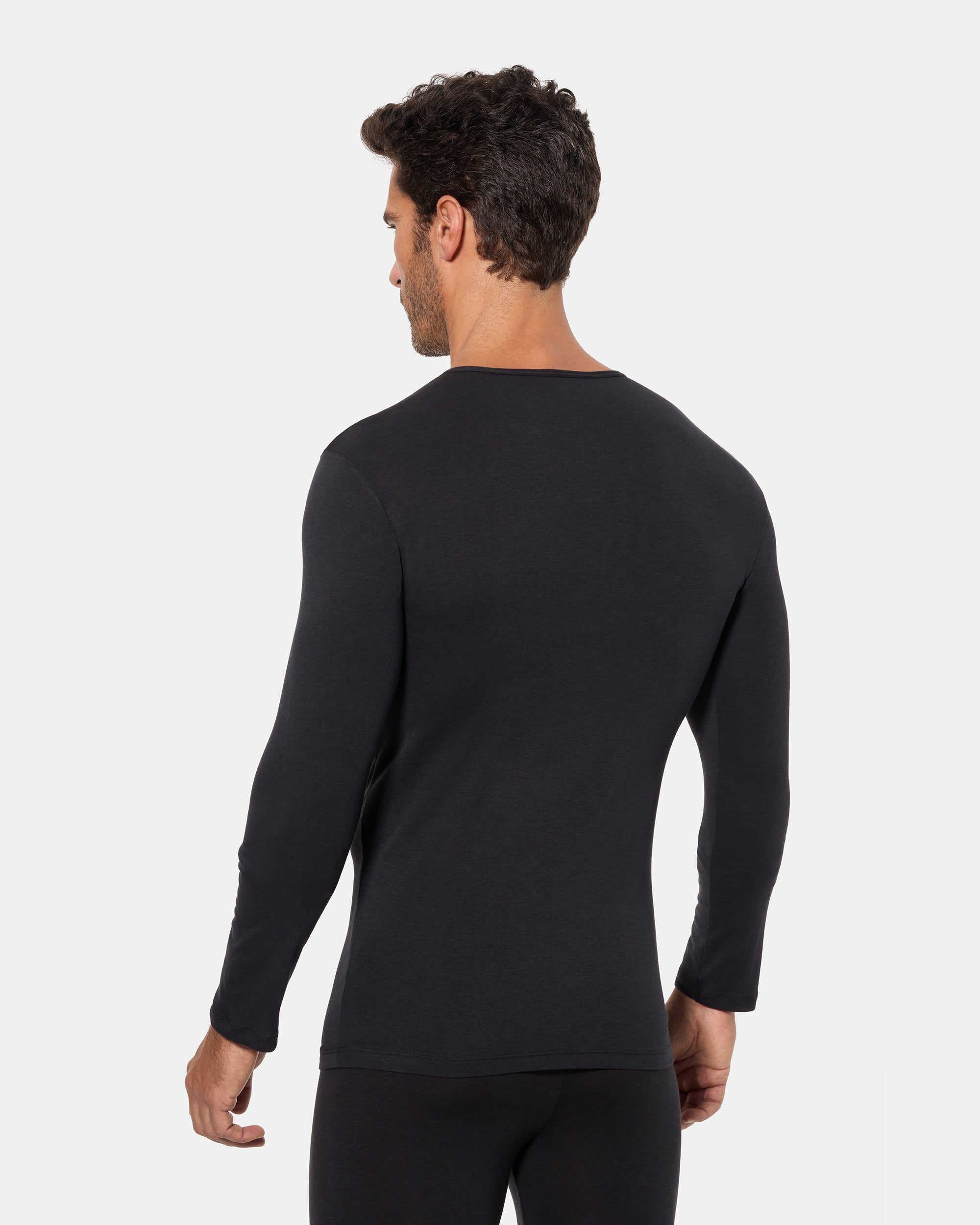 Men's Black Thermal Long Sleeve Round Neck T-Shirt Termaltech