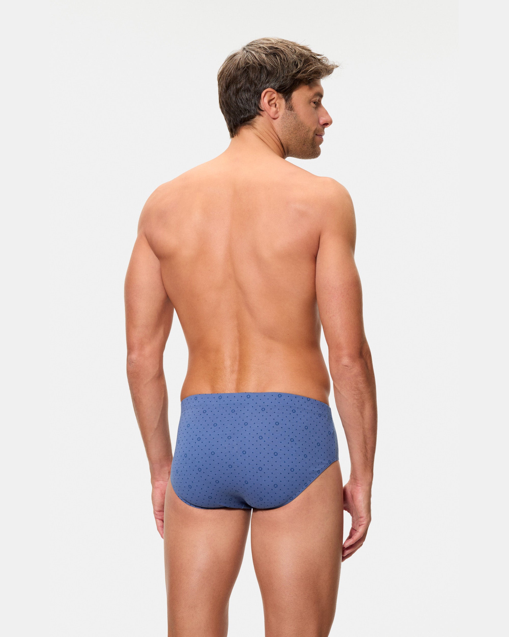 Pack de tres slips semicortos de hombre con estampados tonos azules