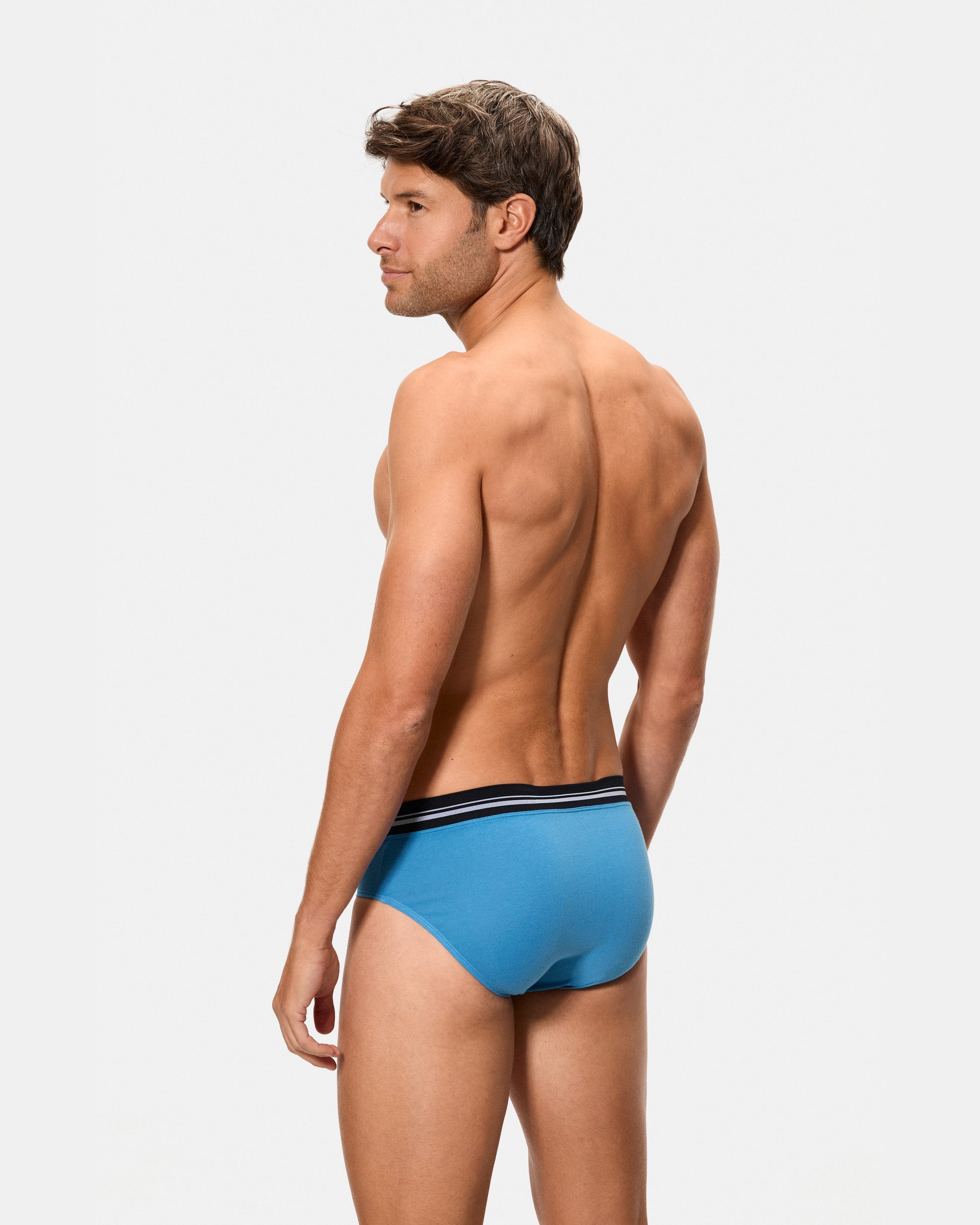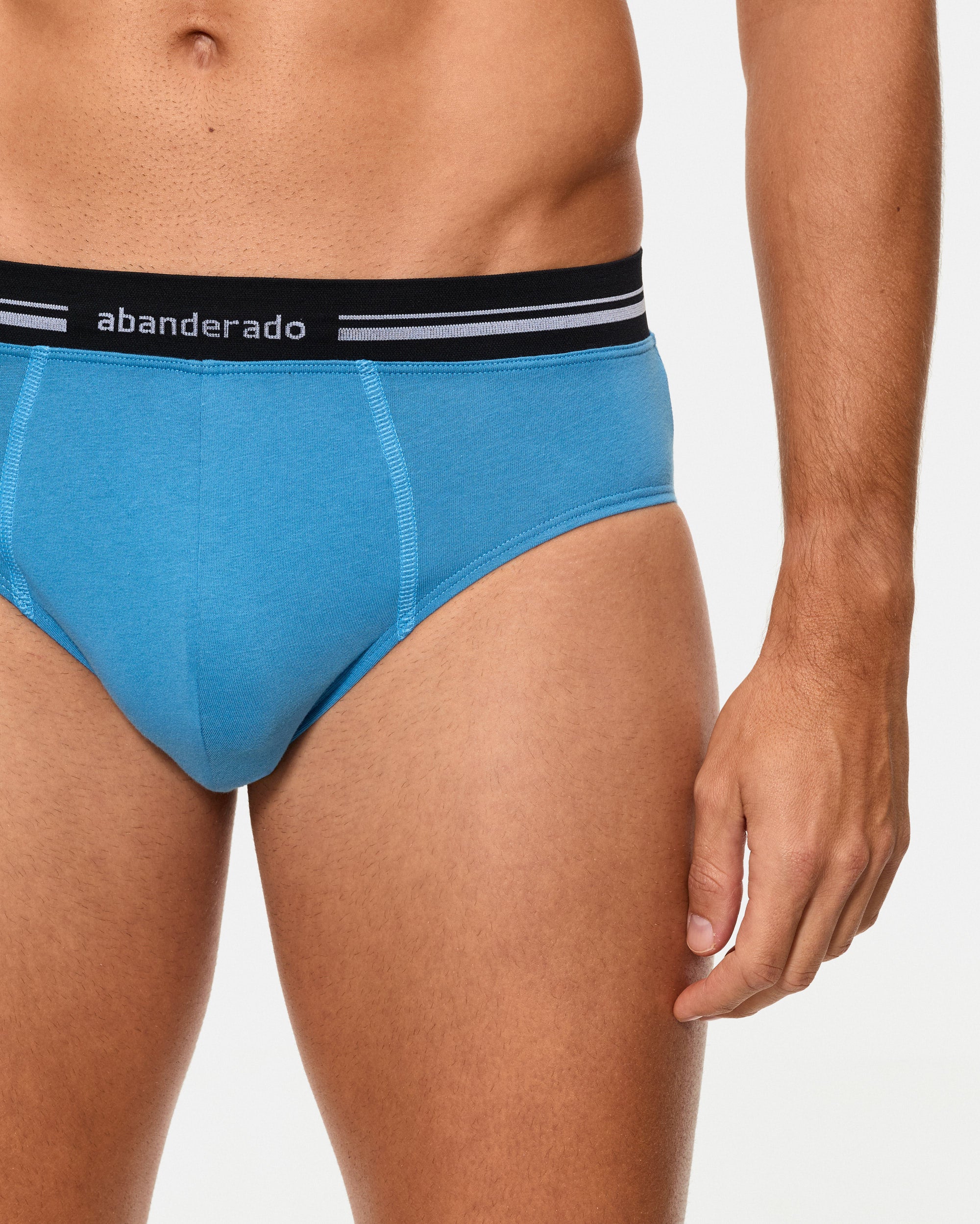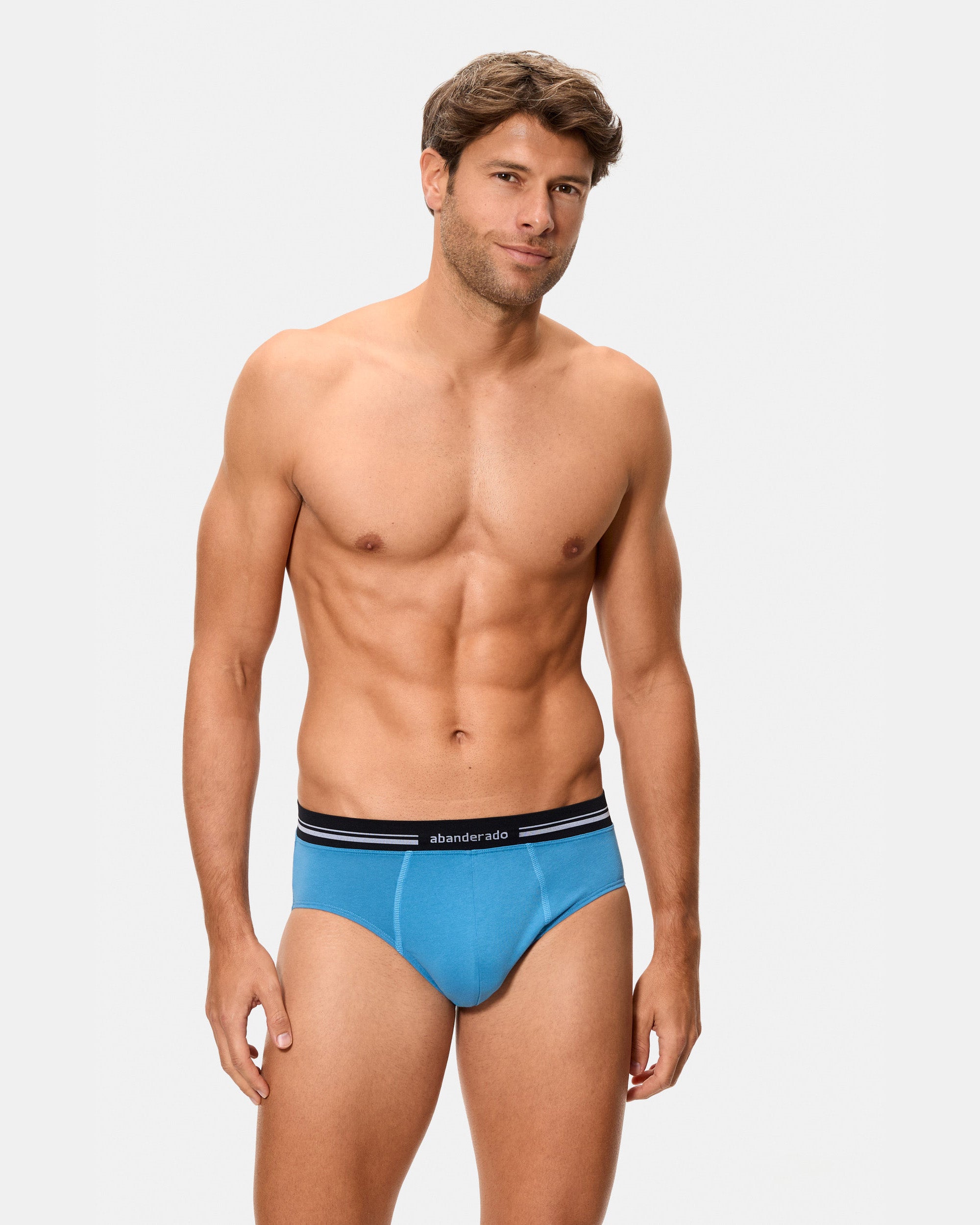 Slip cerrado para hombre en color azul, confeccionado en algodón elástico para un ajuste cómodo y preciso. La cintura extra suave se adapta a la morfología masculina sin apretar ni dejar marcas, convirtiéndolo en un básico perfecto para el uso diario.