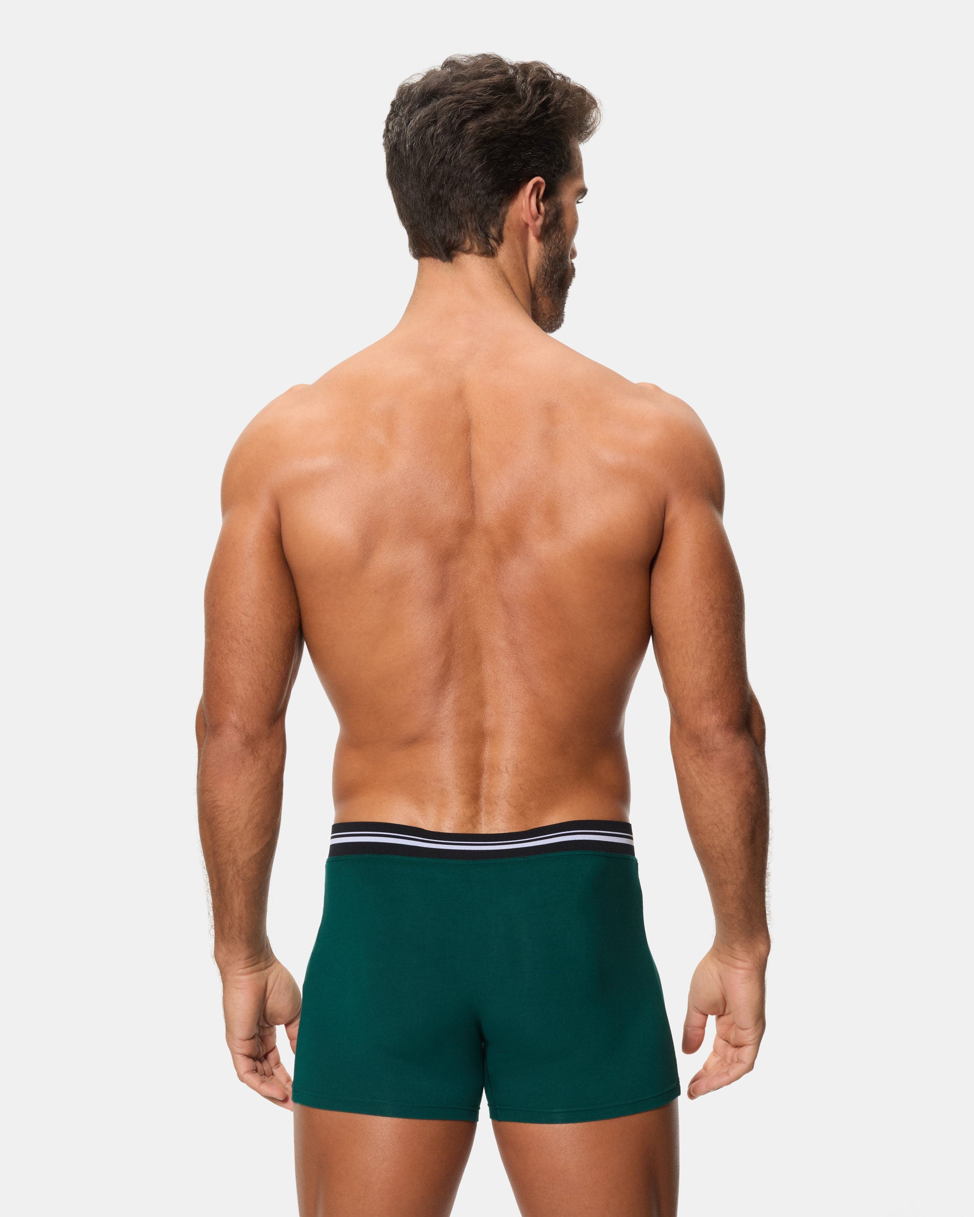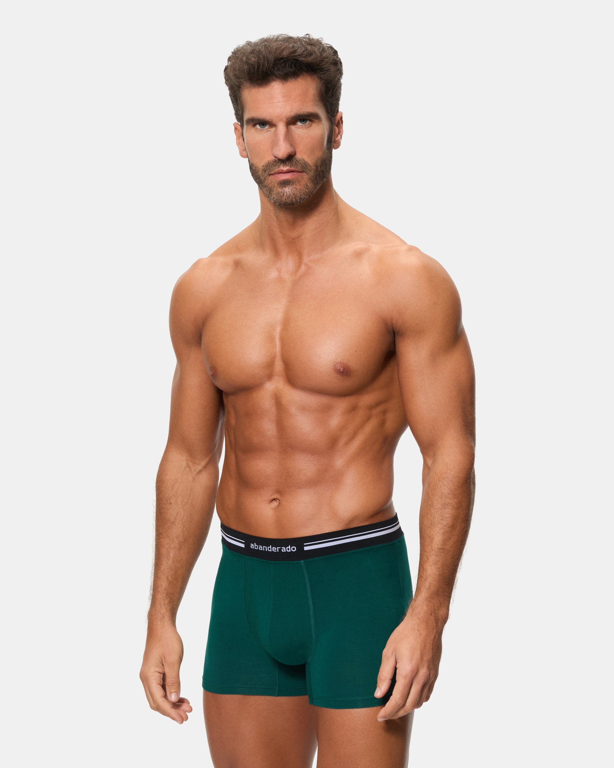 Este bóxer cerrado para hombre en color verde oscuro está diseñado con algodón elástico de alta calidad, proporcionando un ajuste cómodo y perfecto. Su cinturilla elástica extra suave se adapta perfectamente a la morfología masculina, asegurando un ajuste cómodo sin dejar marcas en la piel.