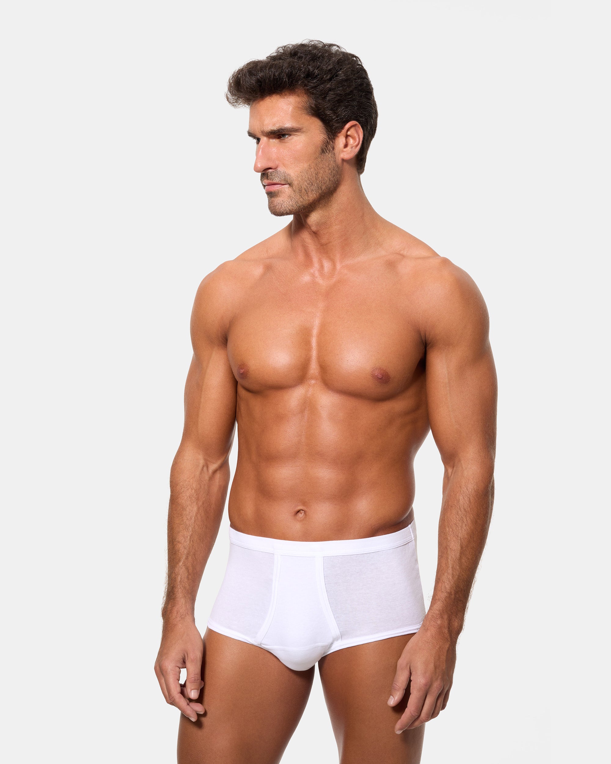 - Braslip abierto clásico confeccionado en 50% algodón y 50% poliéster de alta calidad.