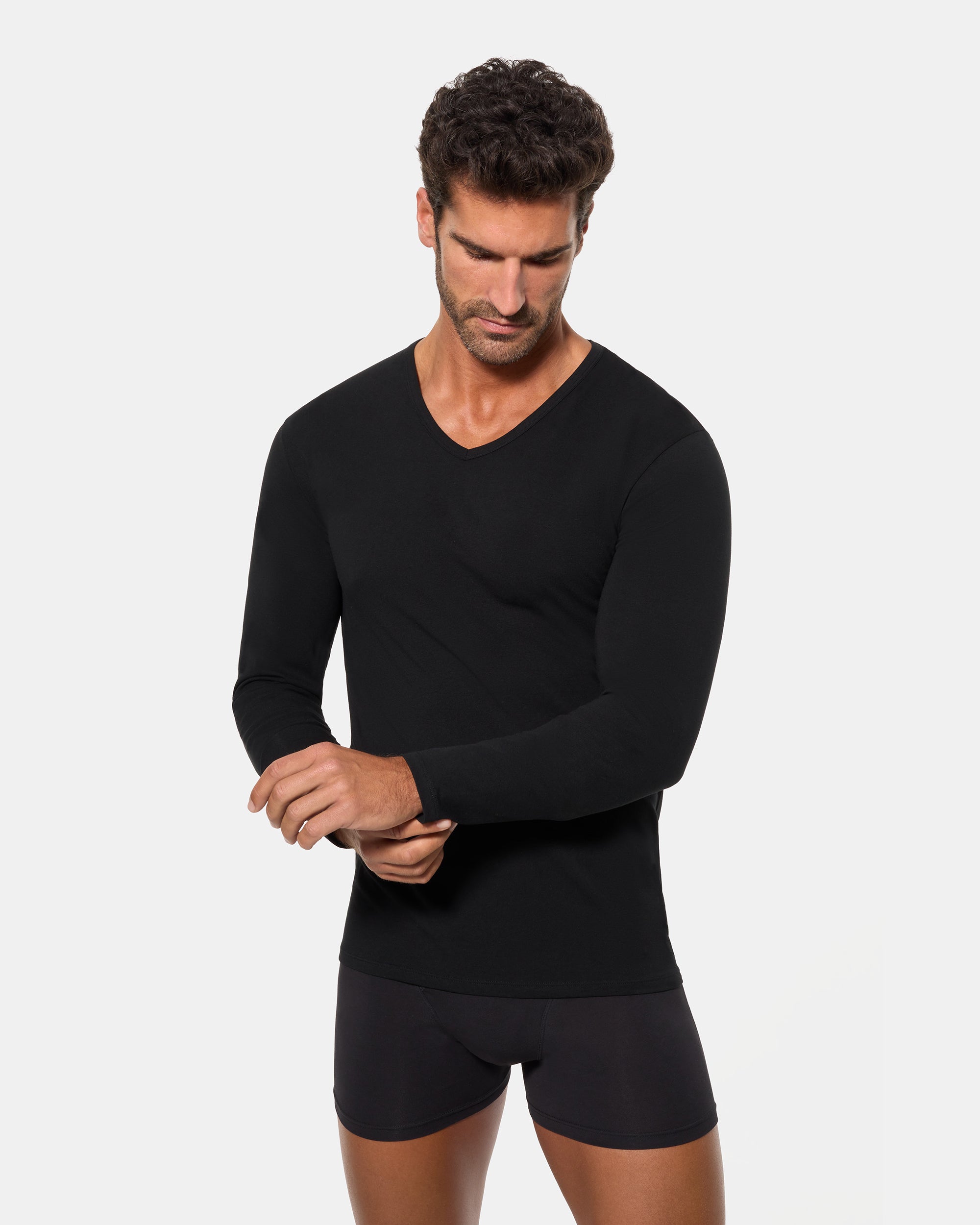 Camiseta de Manga Larga Cuello Pico Tecnología Termorreguladora Regul'activ Algodón Elástico negra hombre