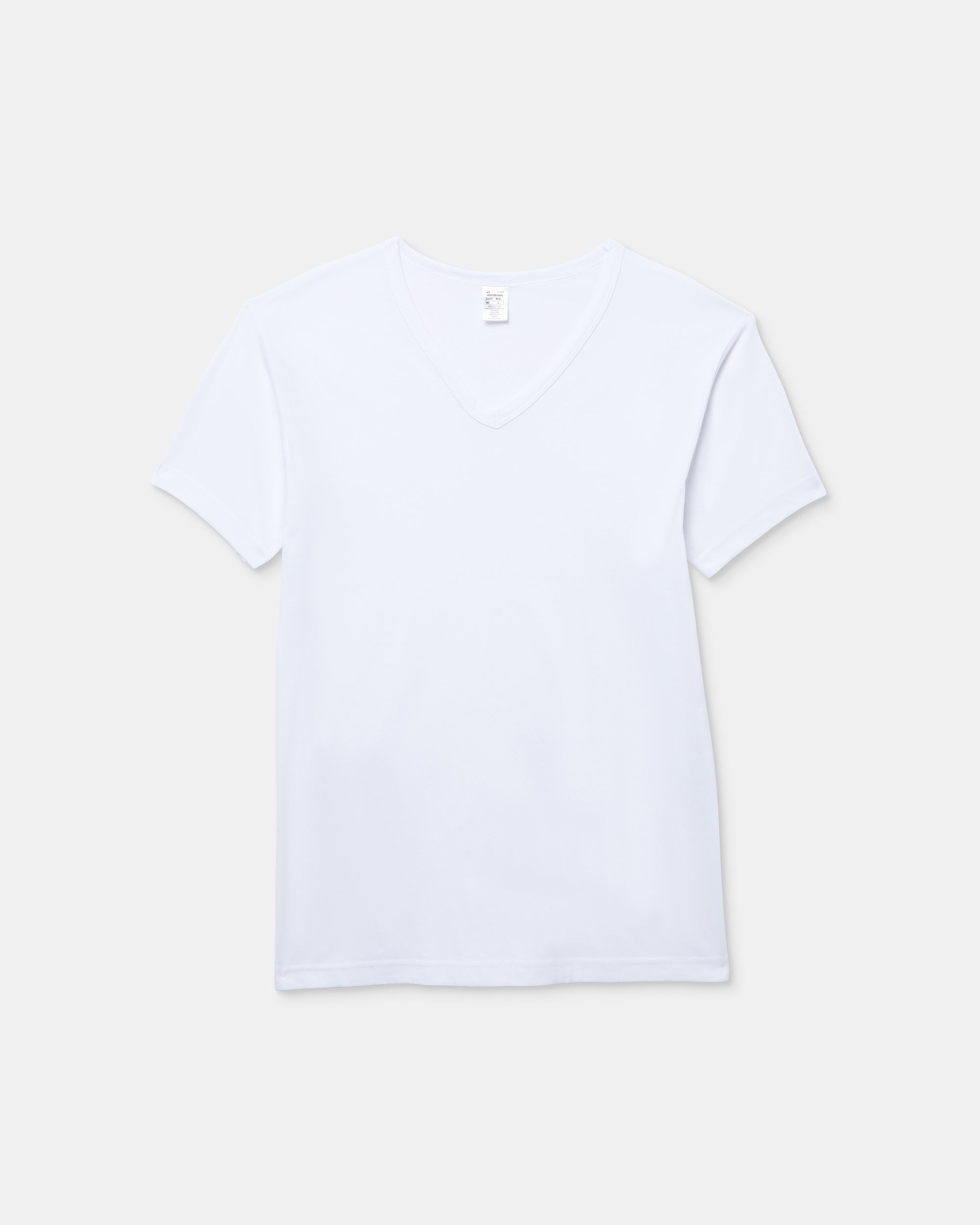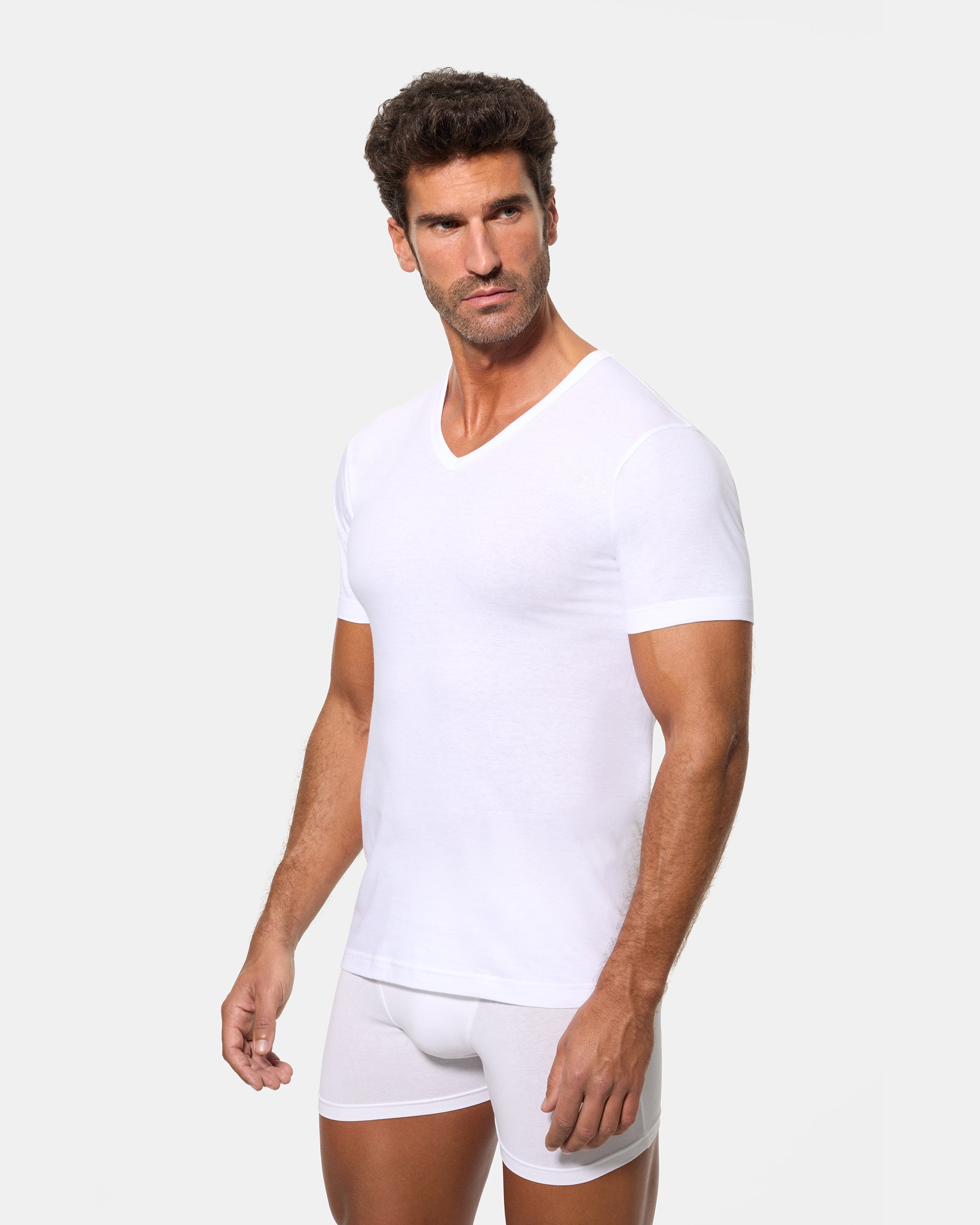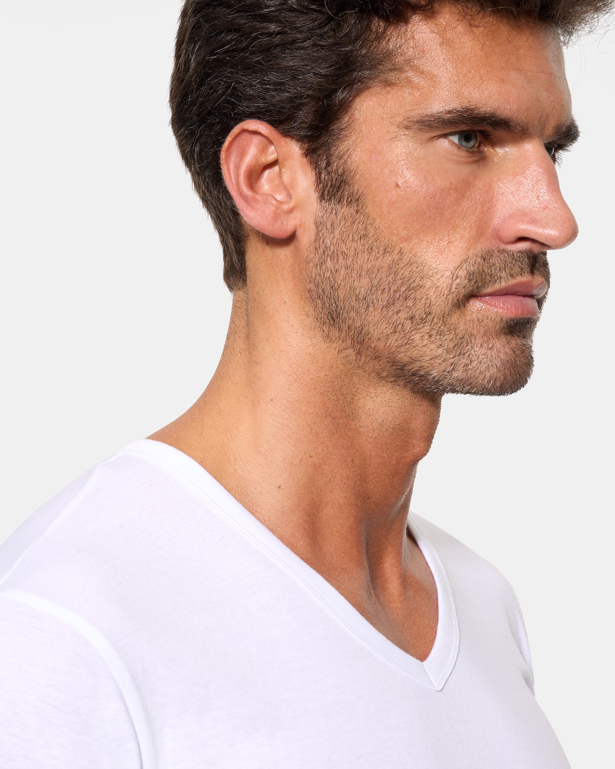 Camiseta Manga Corta Cuello Pico Algodón 100% blanca hombre