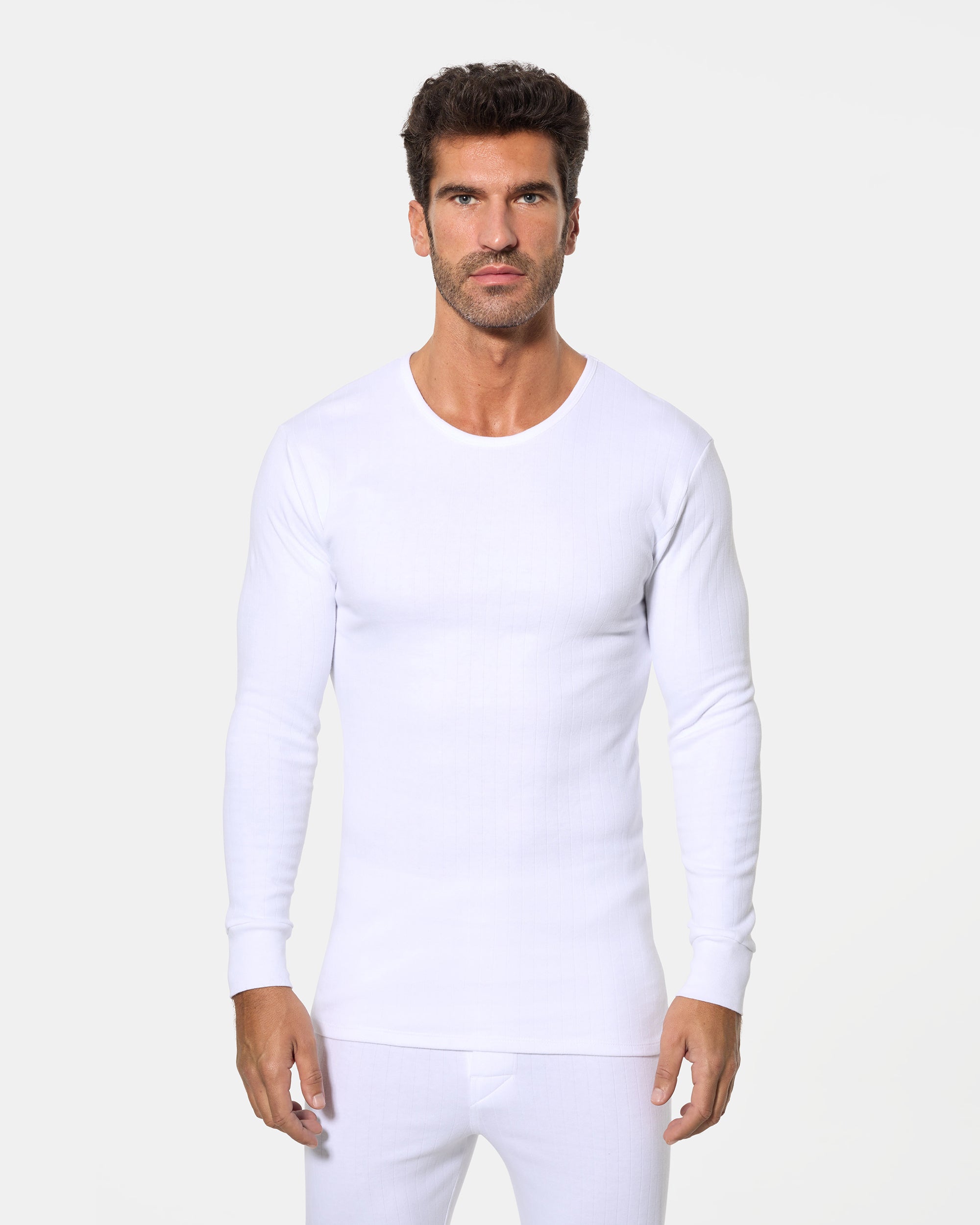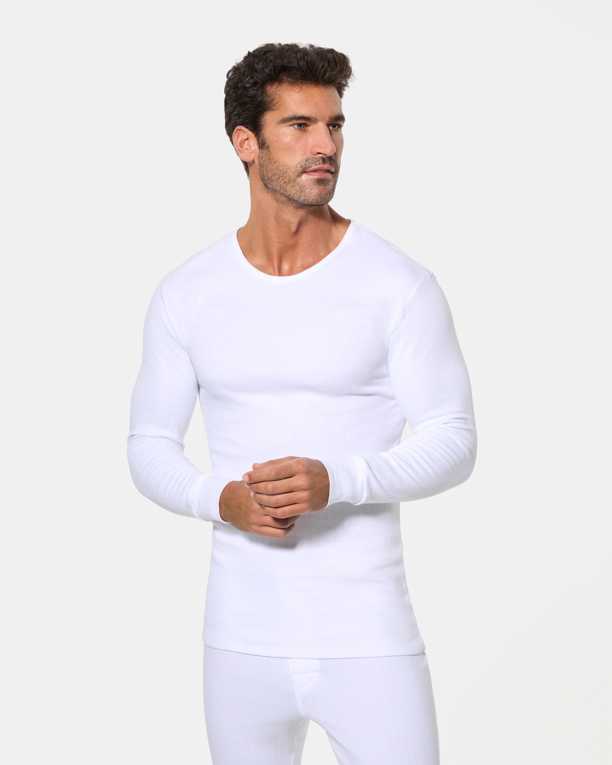 Camiseta Térmica Manga Larga Cuello Redondo Algodón 100% blanca hombre