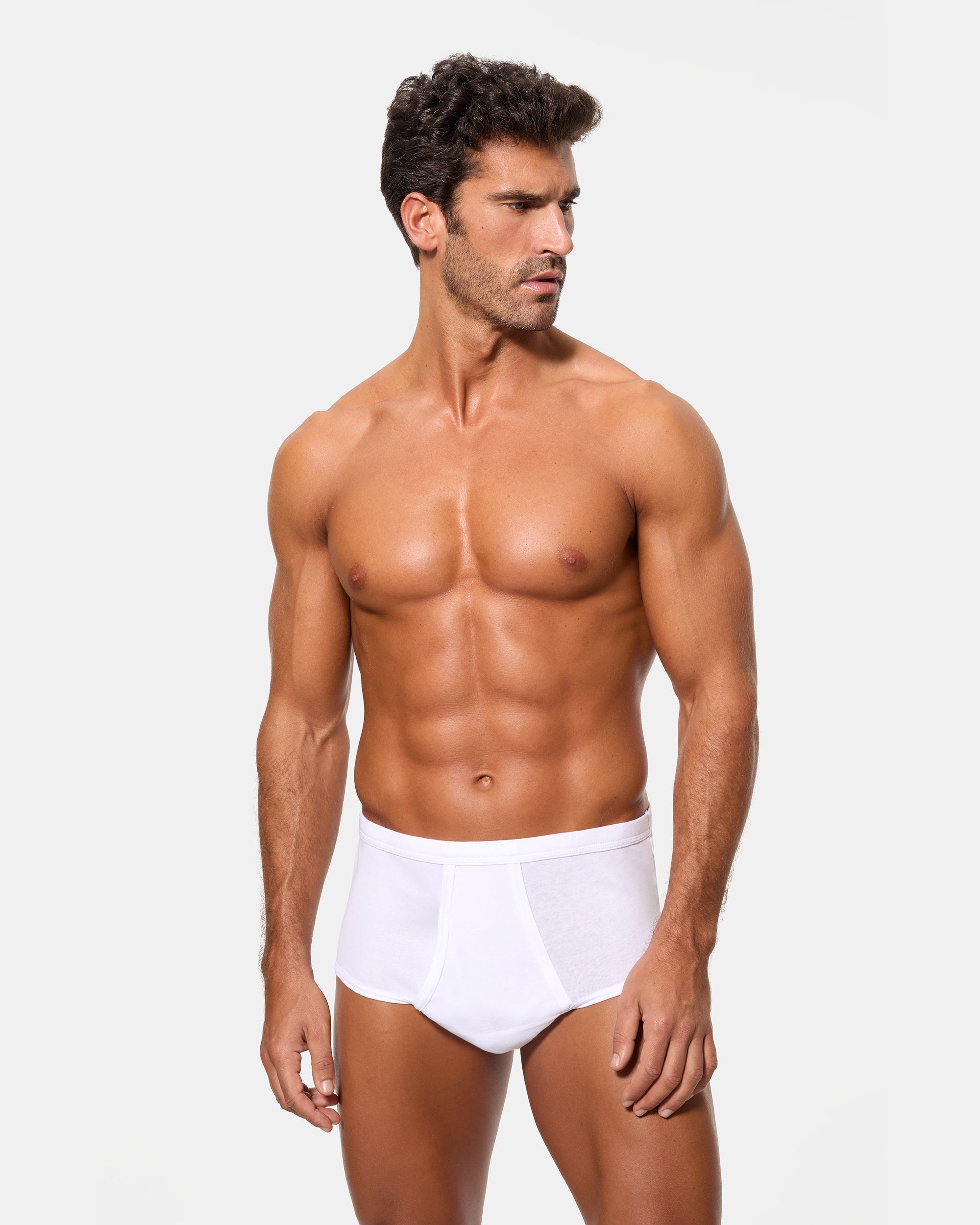 Este pack de 2 braslips abiertos para hombre en color blanco está confeccionado en 100% algodón de máxima calidad, con un tejido canalé 1x1 que proporciona una comodidad excepcional. Su patrón clásico de slip alto y apertura frontal aseguran un ajuste perfecto, mientras que la cinturilla con goma recubierta ofrece un soporte adicional sin apretar. Ideal para quienes buscan una prenda básica, cómoda y transpirable para el día a día.