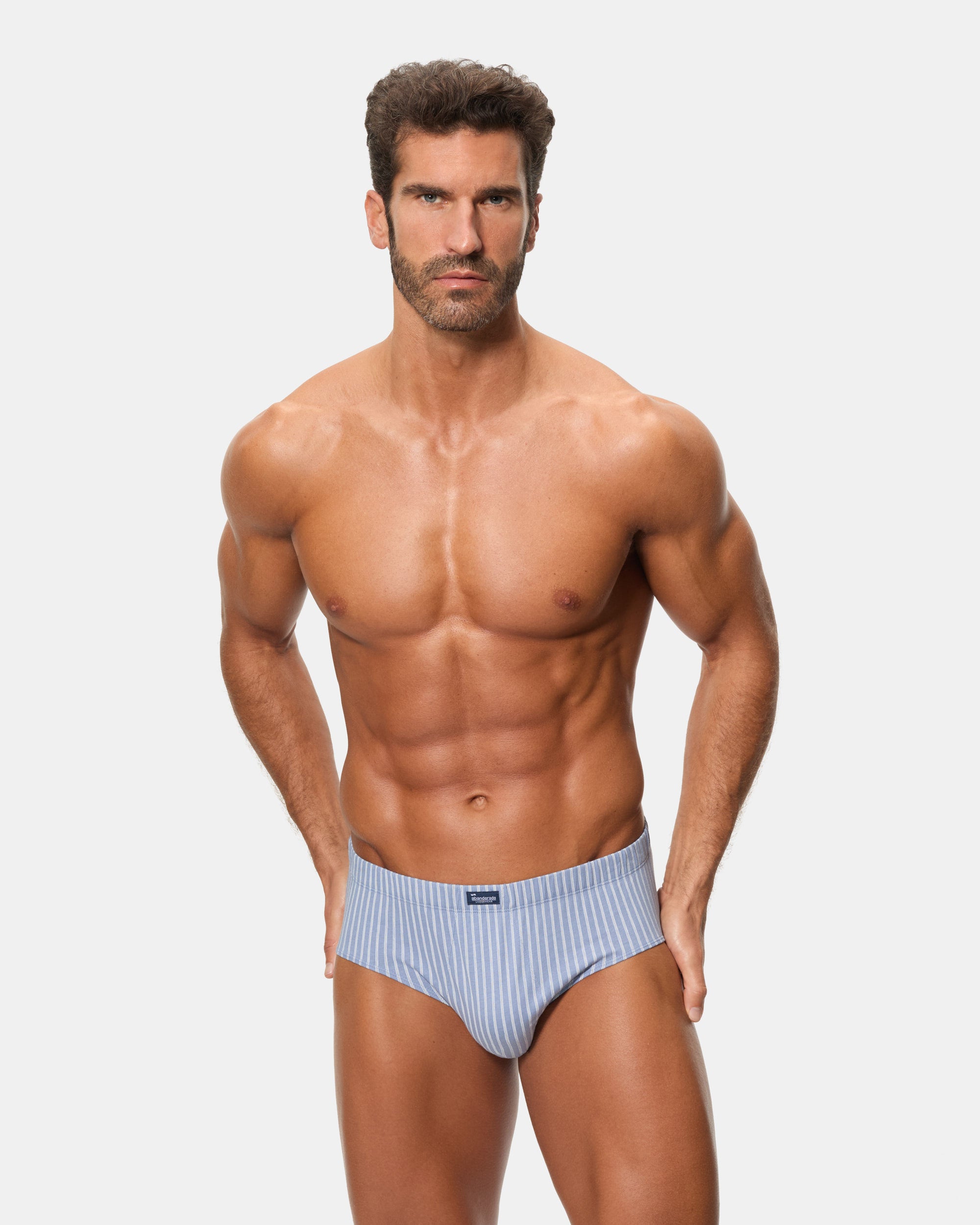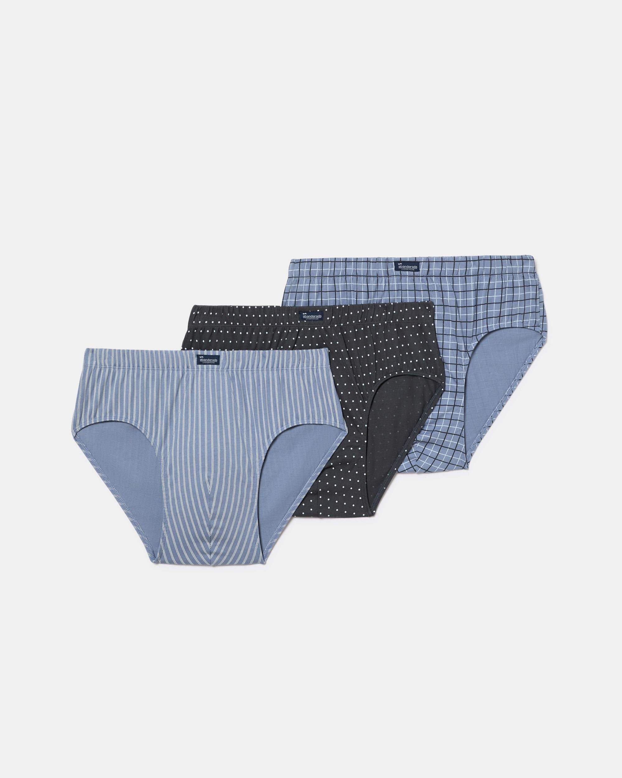 Pack 3 Slips Semicortos Algodón 100% Estampados azul rayas y puntos hombre