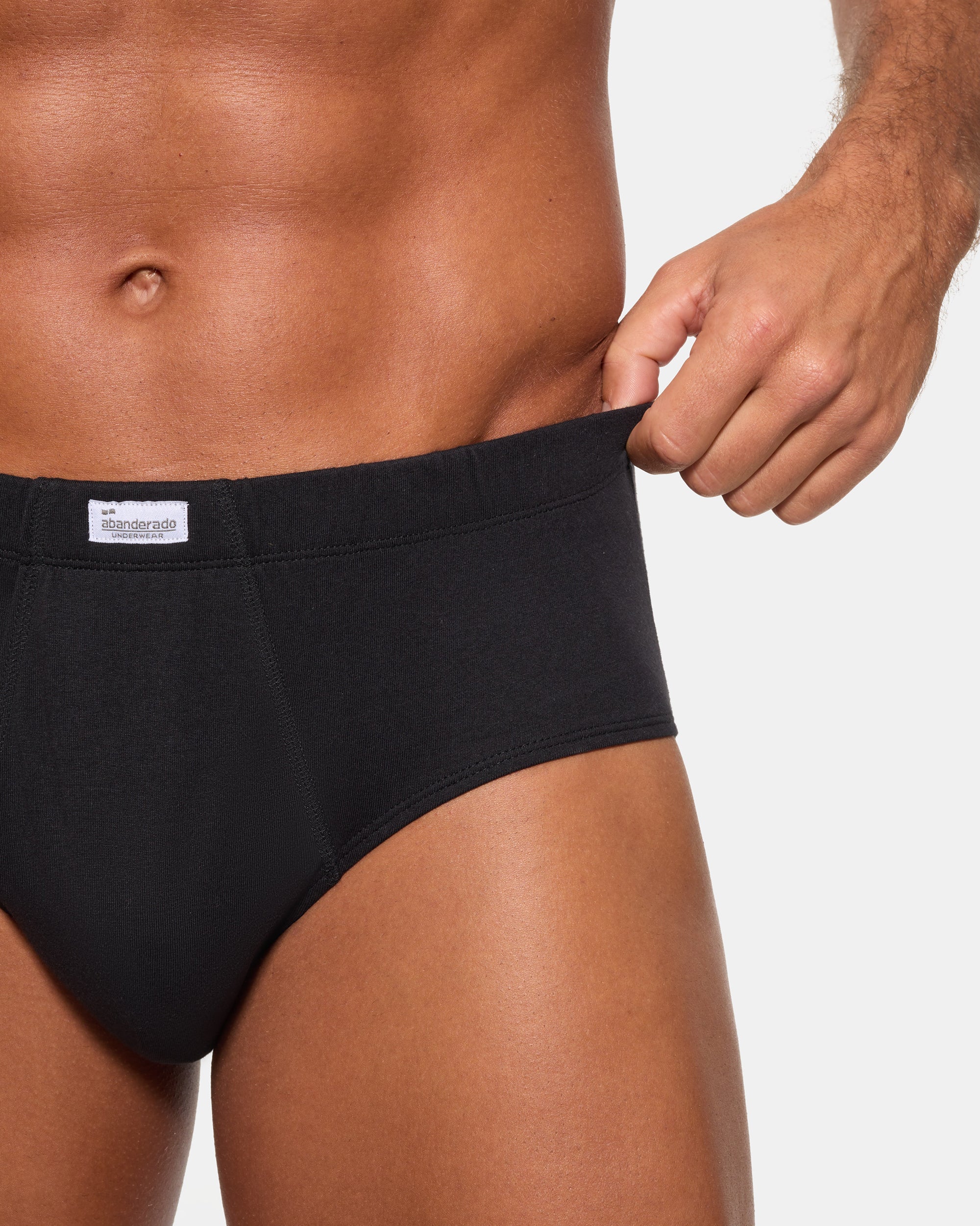 Este slip abierto para hombre en color negro está hecho de algodón 100% de alta calidad, asegurando una suavidad inigualable. Su diseño abierto y patrón clásico ofrecen una excelente sujeción, mientras que la cintura con goma recubierta garantiza un ajuste cómodo y sin presiones. Perfecto para quienes buscan una prenda duradera y cómoda para el día a día.
