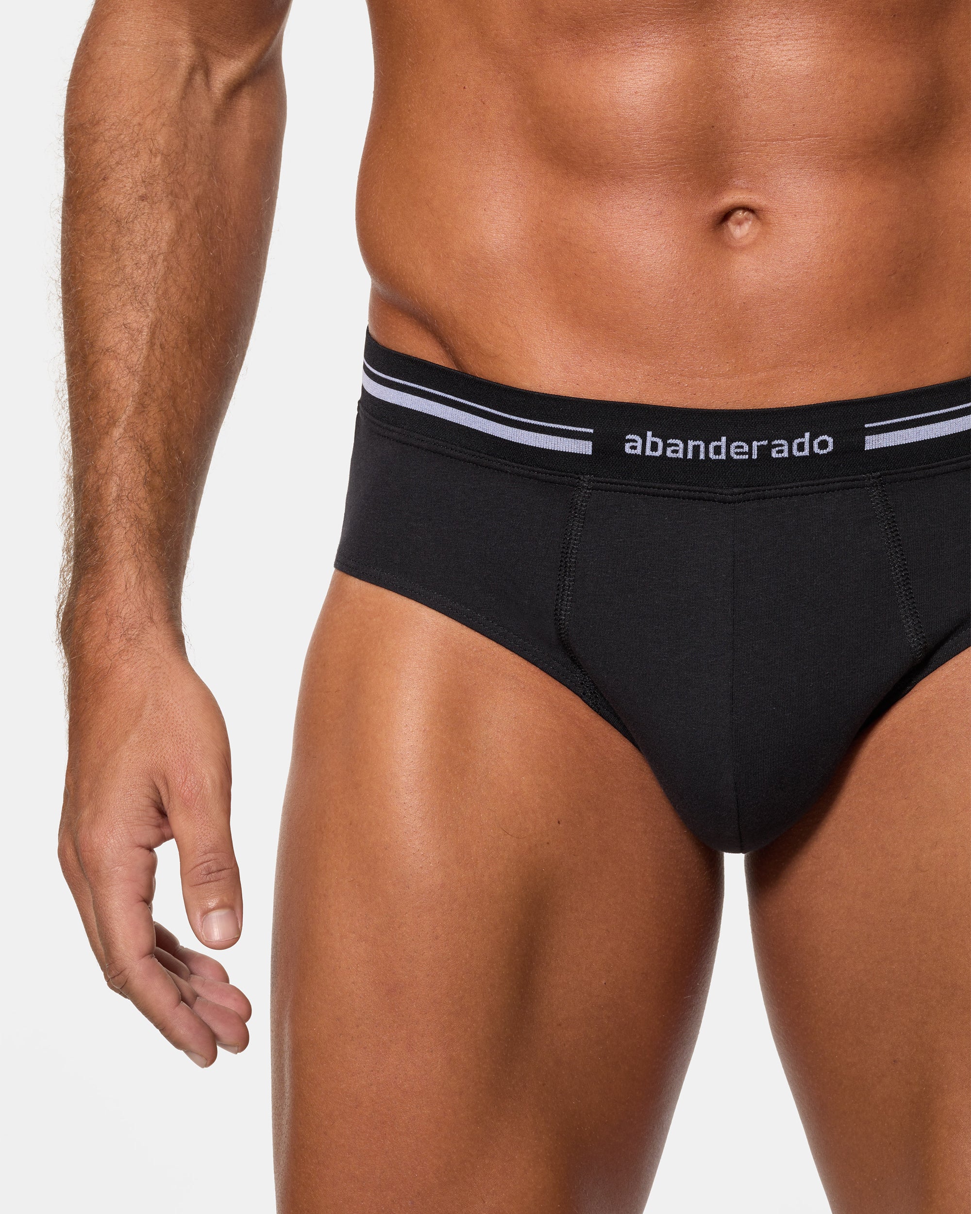 Este slip cerrado para hombre en color negro está diseñado con algodón elástico de alta calidad, proporcionando un ajuste cómodo y seguro. Su cinturilla elástica extra suave no deja marcas ni aprieta, adaptándose perfectamente a la figura masculina. Un calzoncillo ideal para quienes buscan confort y elegancia durante todo el día.
