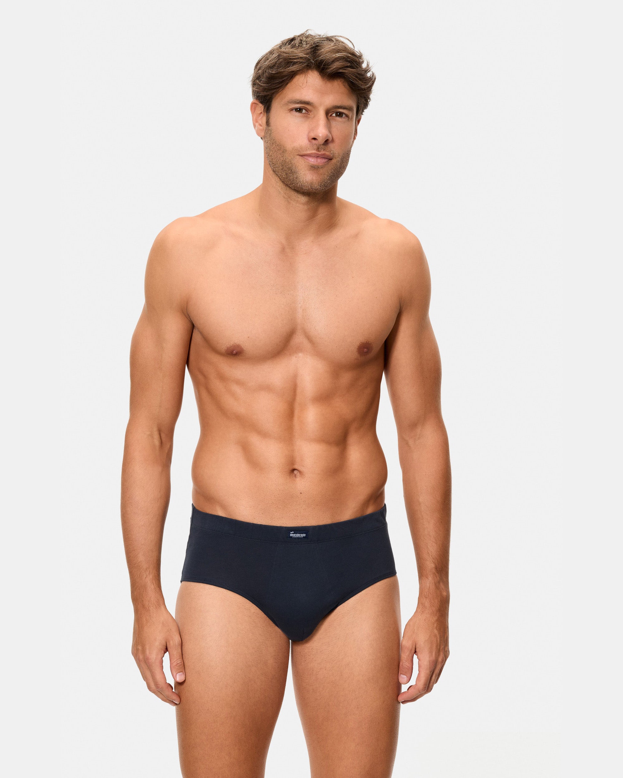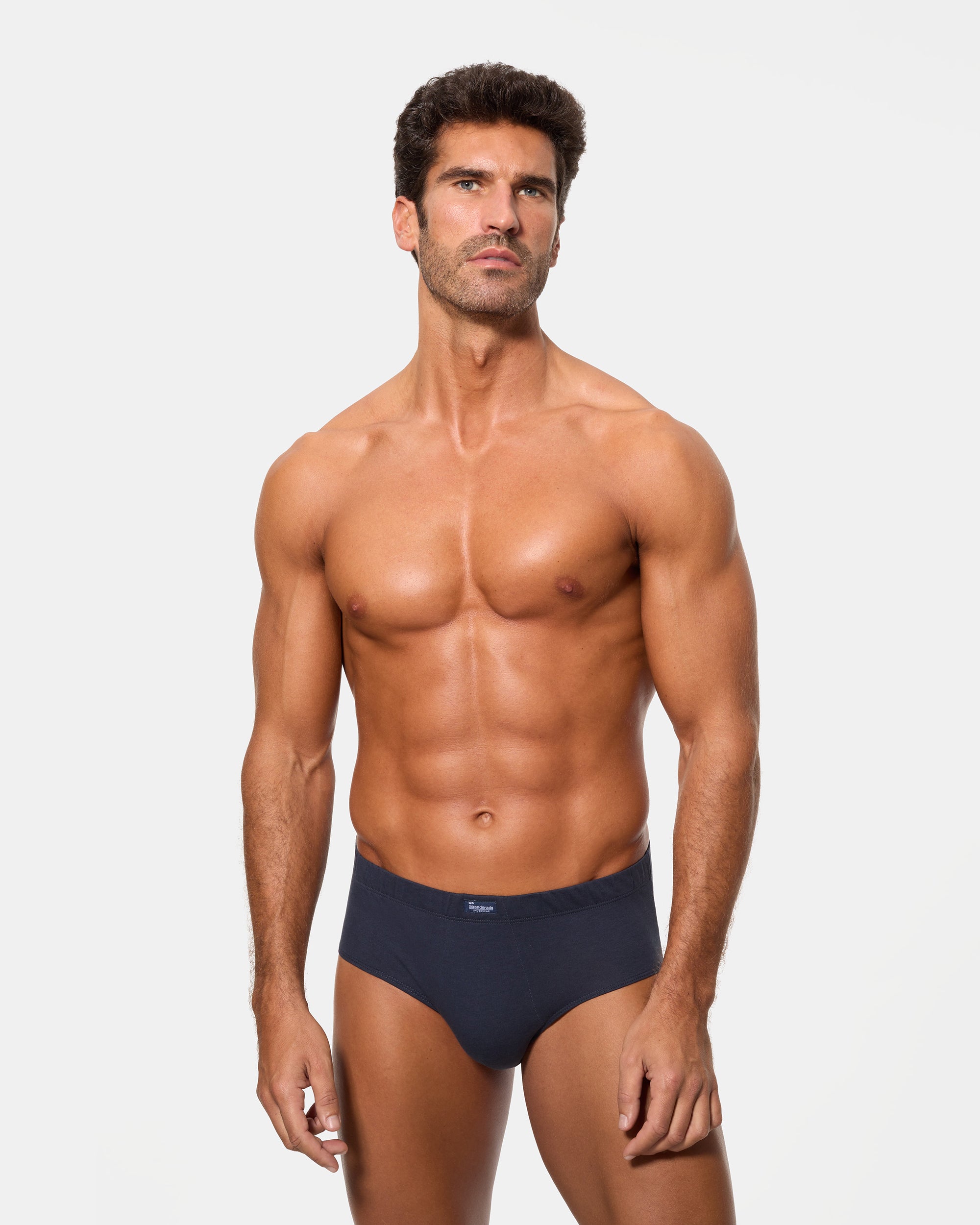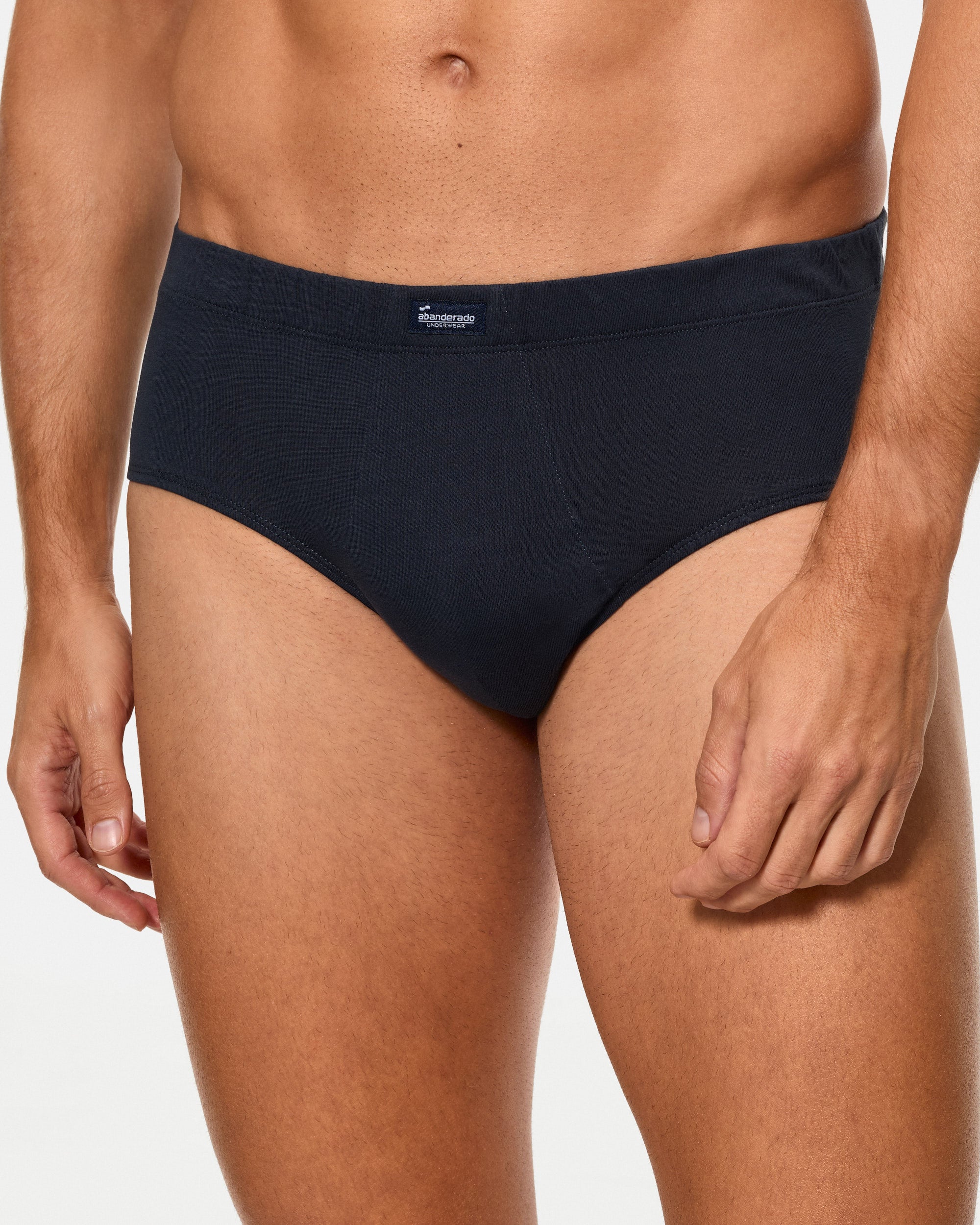 Este slip semicorto para hombre color azul marino, está confeccionado con algodón 100%, garantizando una comodidad excepcional y un ajuste perfecto. Su diseño cerrado y patrón clásico, junto con la cintura con goma recubierta, asegura una gran sujeción y confort durante todo el día. Ideal para quienes buscan una prenda de alta calidad para su día a día.
