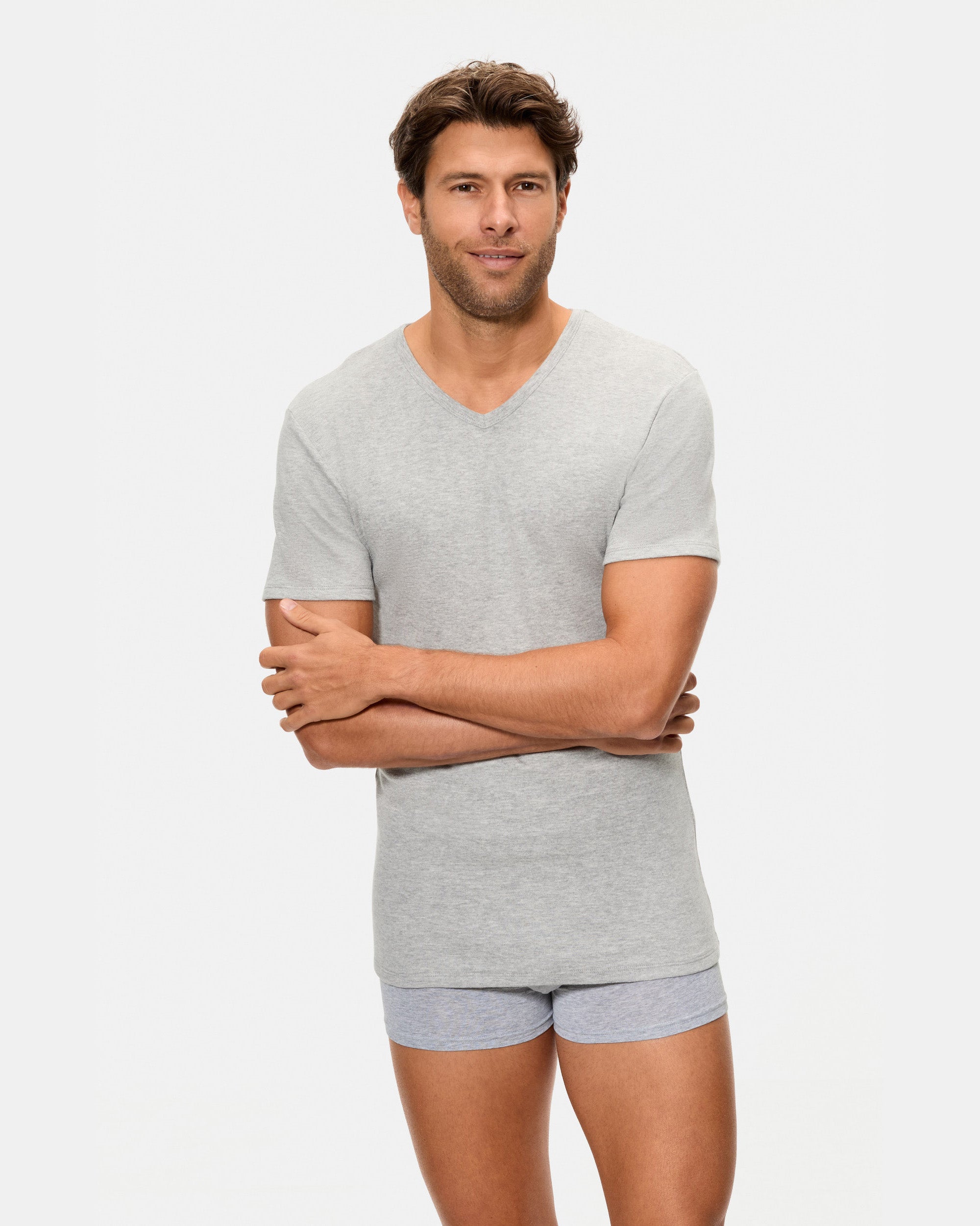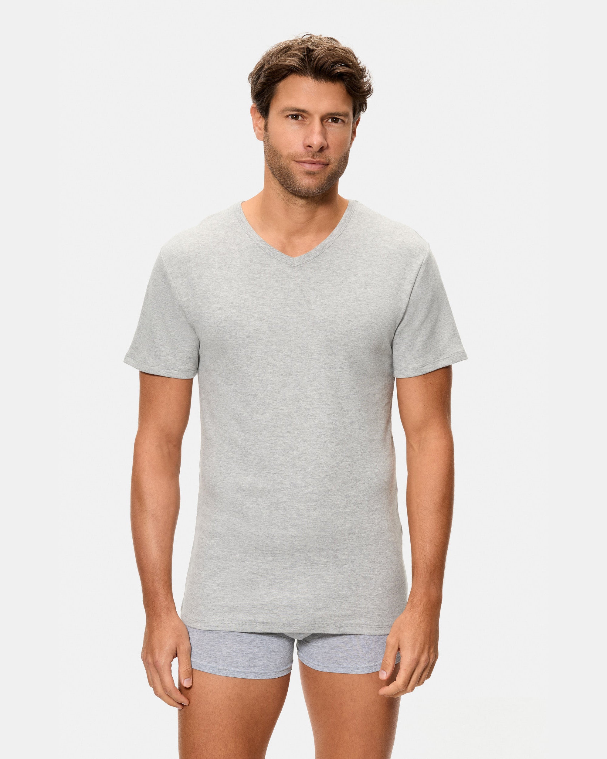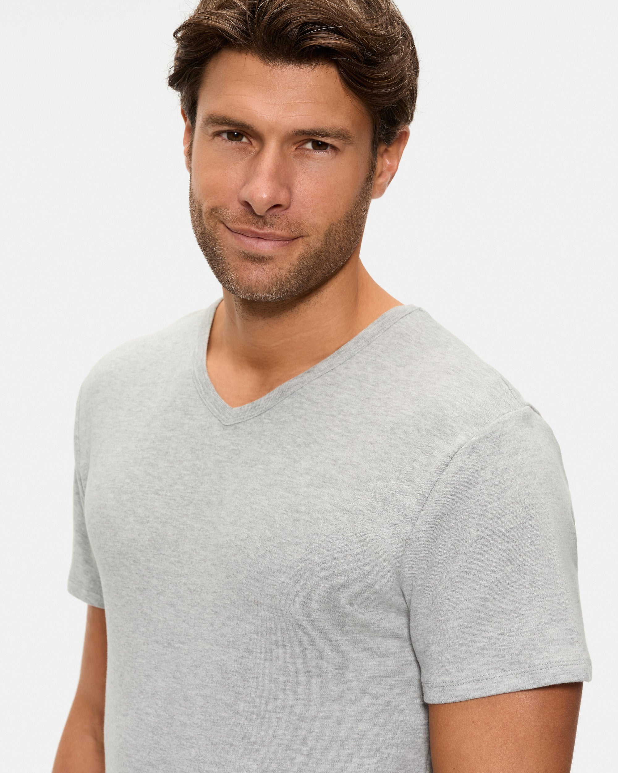 T-SHIRTS de manga curta com decote em V para homem, em tecido interlock Algodão 100% algodão. Macia e quente graças ao forro polar, esta T-SHIRTS é ideal para o conforto e o calor durante todo o dia. A cor Cinzento escuro confere-lhe um estilo elegante e discreto, perfeito para quem procura uma peça de vestuário térmico que combine com tudo.