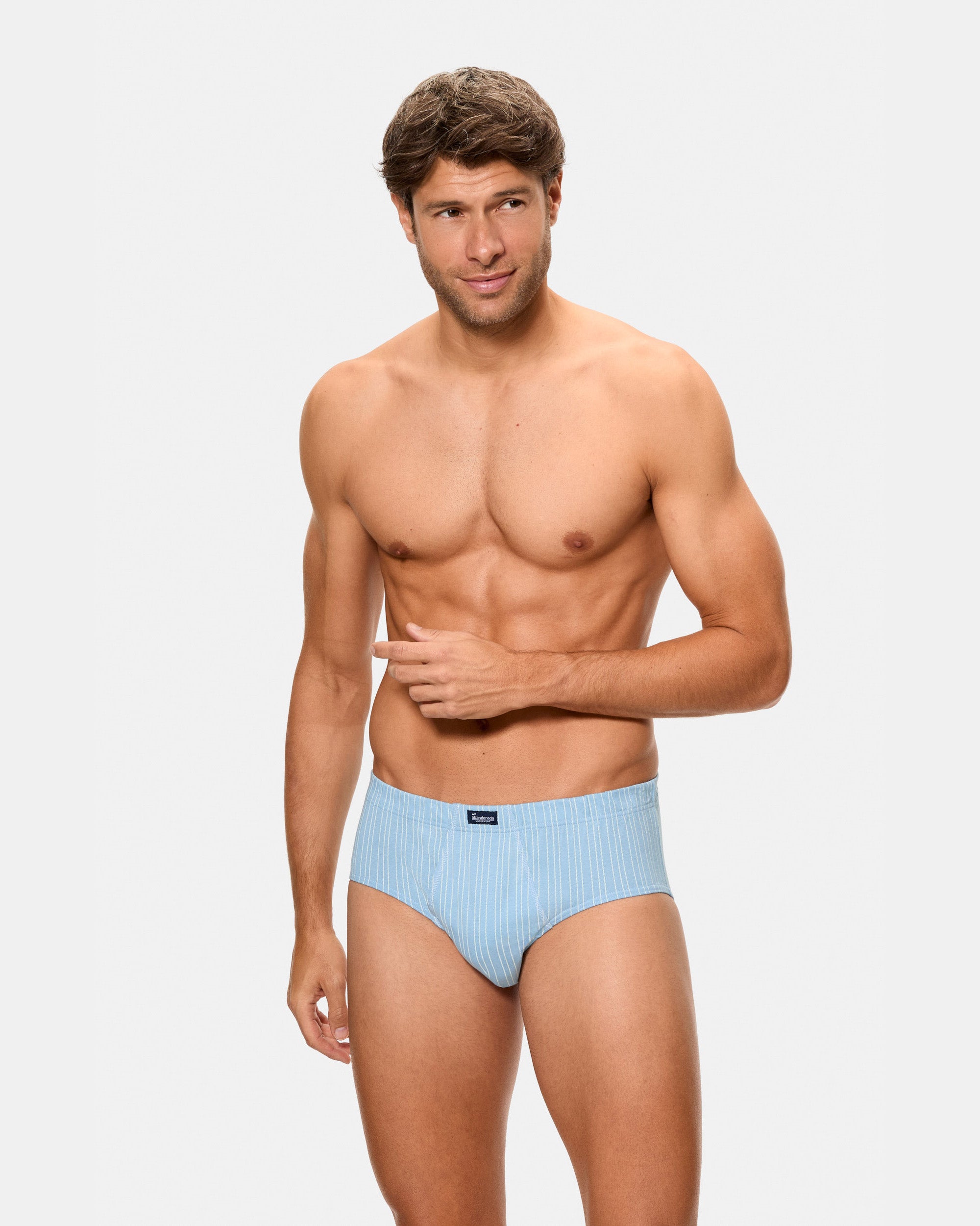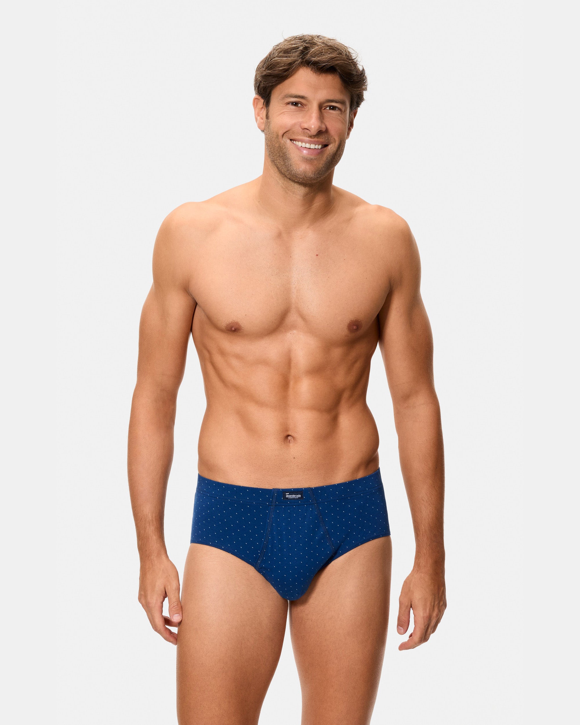Elige un básico funcional con un toque de diseño: pack de 3 slips abiertos de hombre en azul, realizados en algodón 100%. El estampado geométrico aporta un estilo moderno sin perder la esencia clásica, y la abertura frontal mejora la comodidad. El punto liso favorece la transpiración para acompañarte durante todo el día.